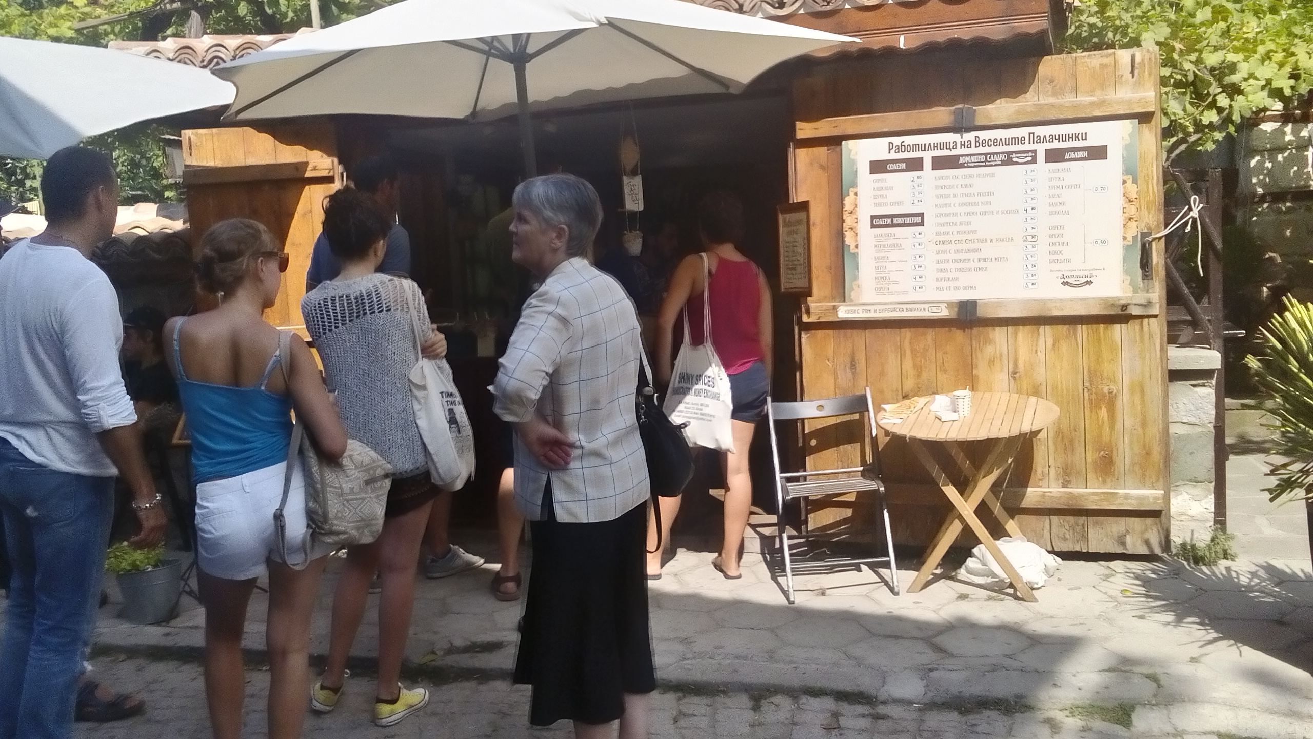 Рано е и дори и в 10 часа не са отворени сума ти магазини. Дори сергията за мъниста и всякакви джунджурийки на входа на Стария Созопол до църквата. Тепърва търговци изнасят стоката си. Редят я и ще отварят. От три възможни пътя след Чешмата пред Пощата хващам най-десния. Има вече и нова галерийка с музикални кутийки /виж снимката/, има и някакво симпатико – магазинче, в което вътре спореха на висок глас и реших,че ако снимам и ме видят, може и да ме набият, както са загрели. Подминавам…Брех, опашка за нещо си! Храна е, ама за каква храна чакат хората сутрин и то чак опашка направили? Ами за „Веселата палачинка” чакат, а на менюто и – изписани палачинки с поне 20 вида пълнежи. Щрак! Следващото заведение и то палачинки продава, че даже и на руски ги написало, ма- нъц. Няма хора, няма опашка. Не са весели палачинките, какво да купуват хората?! Виж позитивизмът докъде ни докара, до загиване на бизнеси! Но иначе се казва маркетинг работата, така и казват по модерному сега.