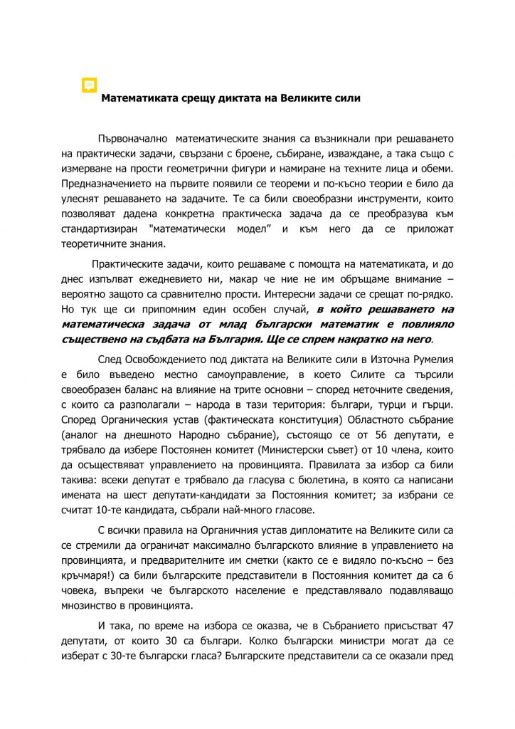 Математиката срещу диктата на Великите сили – 140 години от събитието