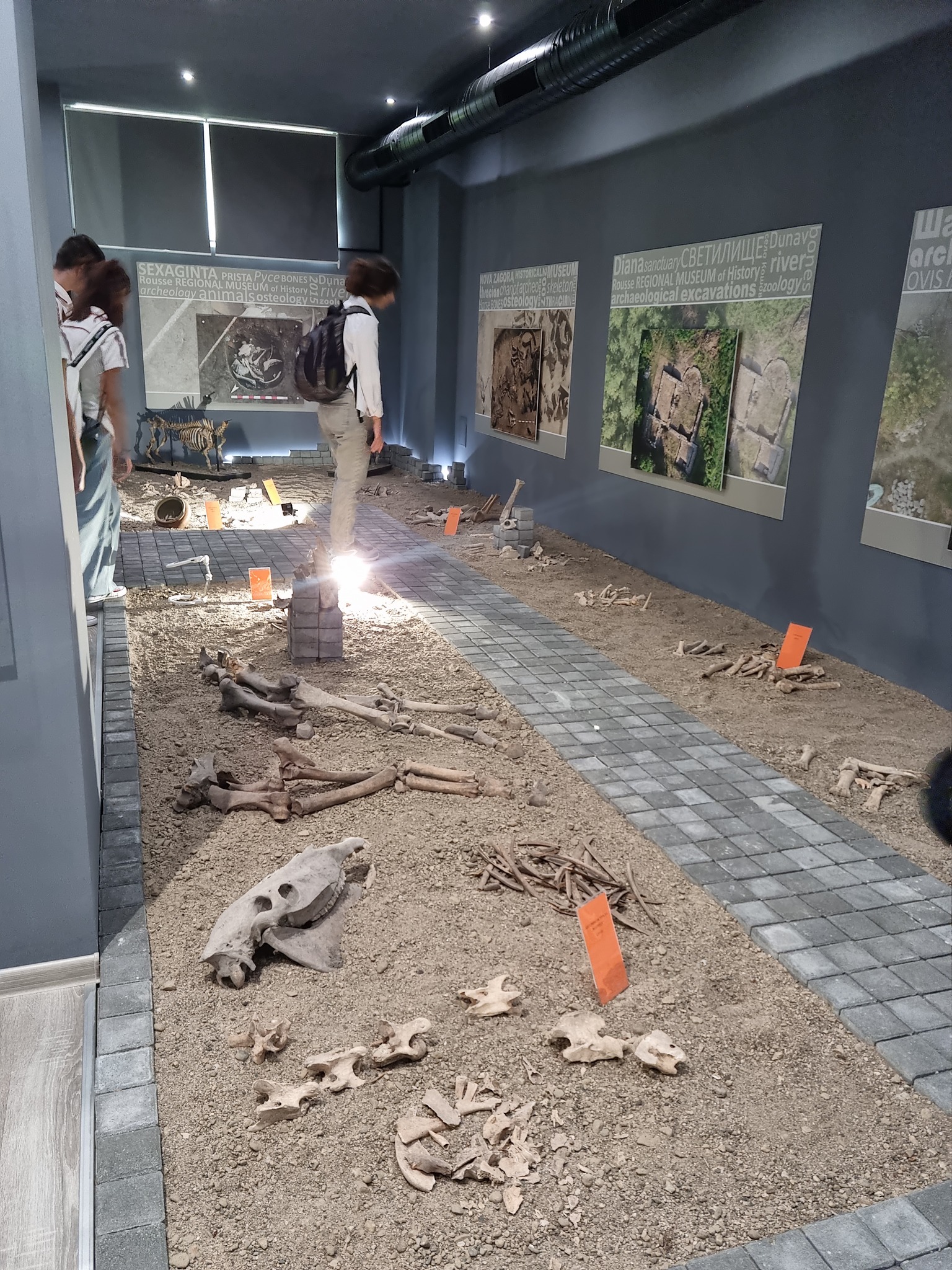 Изложеният костен материал е добиван в продължение на много години от съвместна работа с археолози от музеите в страната. Има кости от Неолита, кости с патология, обработвани кости и пр. На времето проф. Стефан Иванов , по-късно проф. Ковачев, понастоящем доц. д-р Костов и доц. д-р Диана Владова продължават да работят и сега по артефактите при археологическите проучвания.