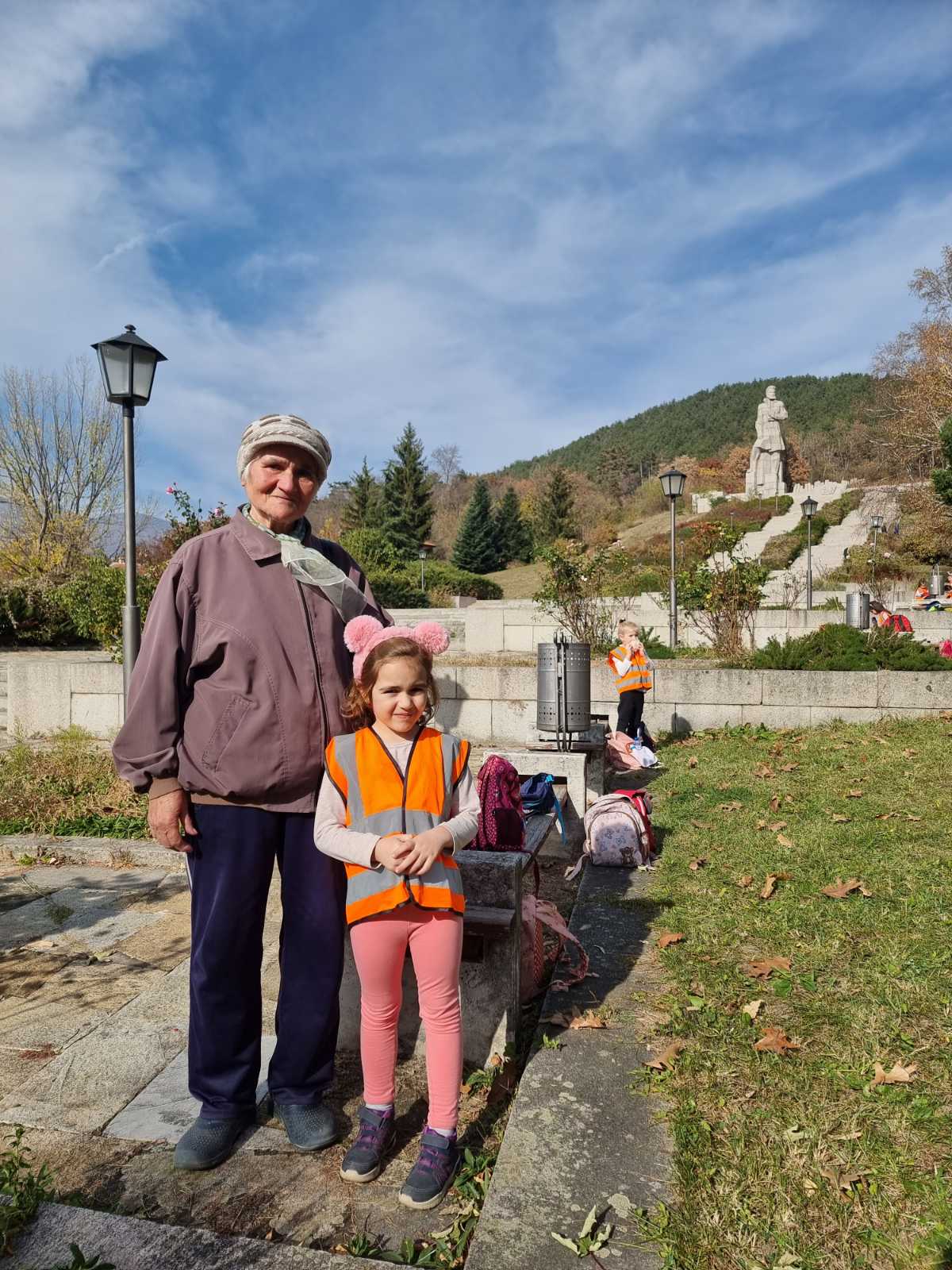Докато се изкачваме към монумента, поспираме, за да се насладим на живописния Балкан и кристалния въздух. По време на разказа ни научихме децата , какво се прави когато посещаваме паметник ,как да се държим, защо.