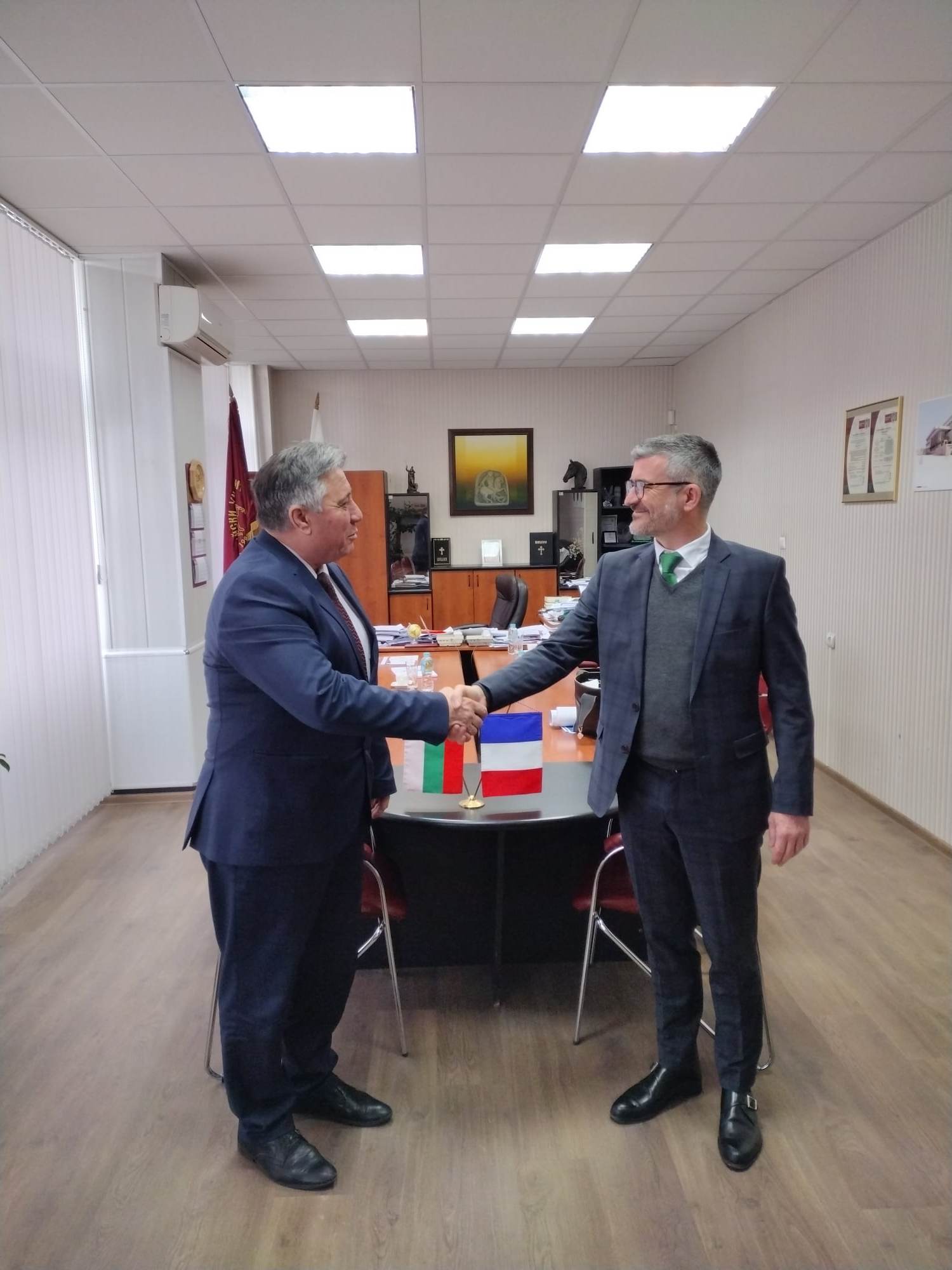 Ректорът на Тракийския Университет проф. д-р Добри Ярков посрещна в Стара Загора г-н Арно Боберо, аташе по научното и университетско сътрудничество в посолството на Франция у нас. Много над предвиденото по протокол време продължи двустранният разговор, защото възможностите за сътрудничество, обмен на учени, докторанти и студенти, се оказаха толкова многообразни, че изискваха получаването и обсъждането на разнородна информация.