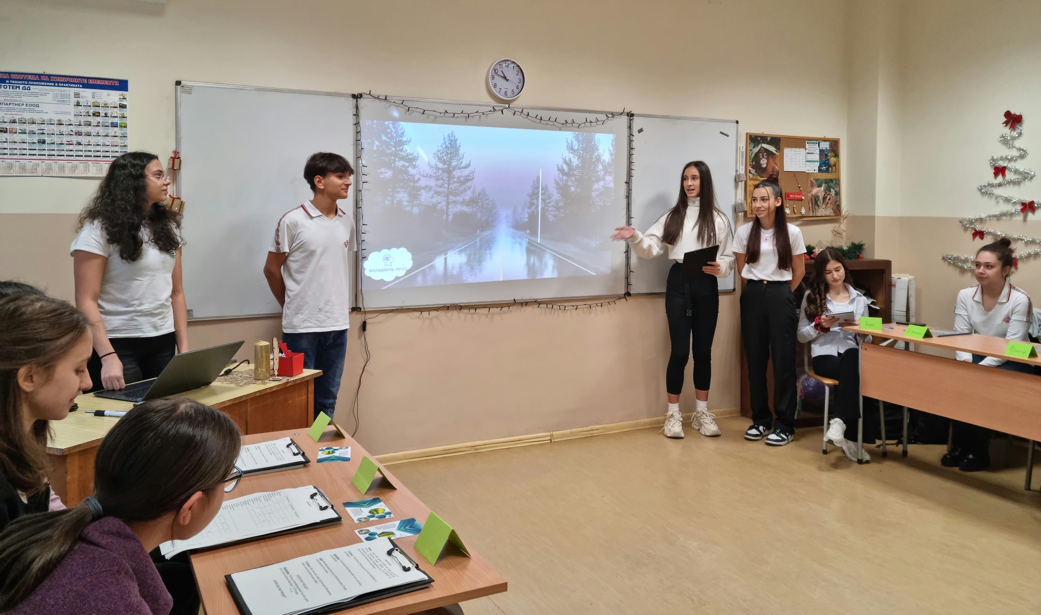 Отбор Wondering Minds (Бетина, Веселина, Доника, Жаклин, Кристиян, Рая и Таня) започна с темата за киселинните дъждове