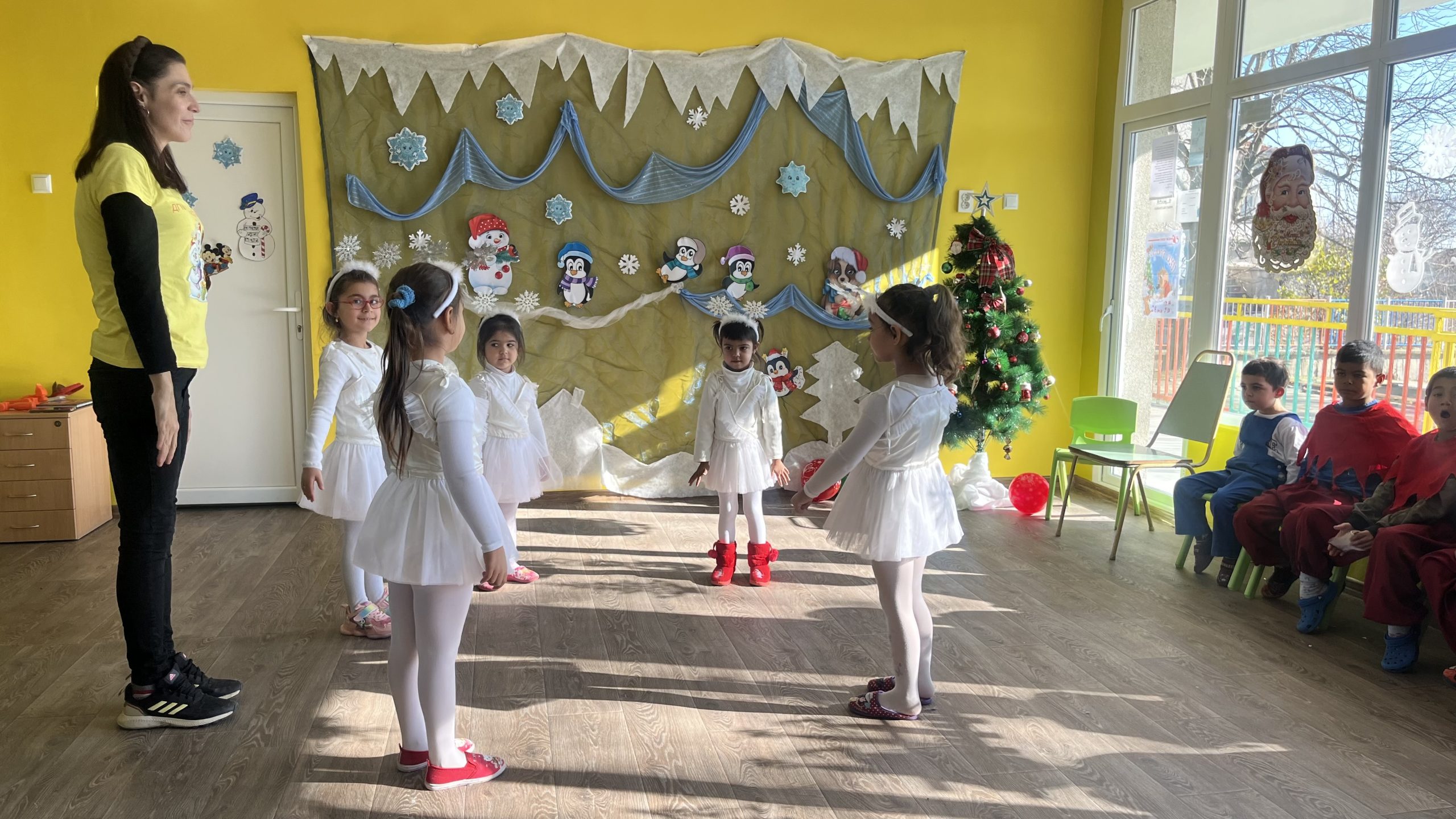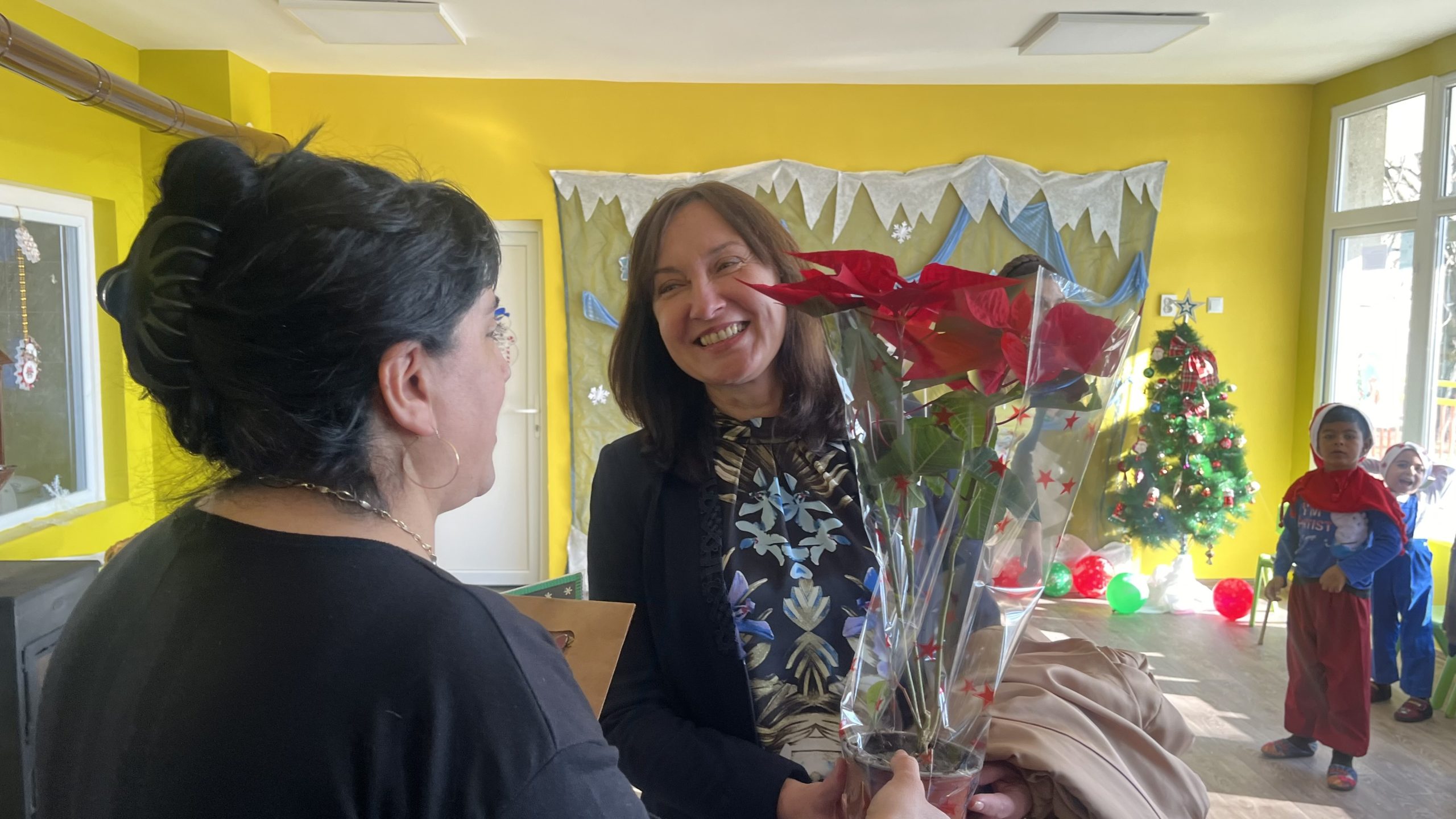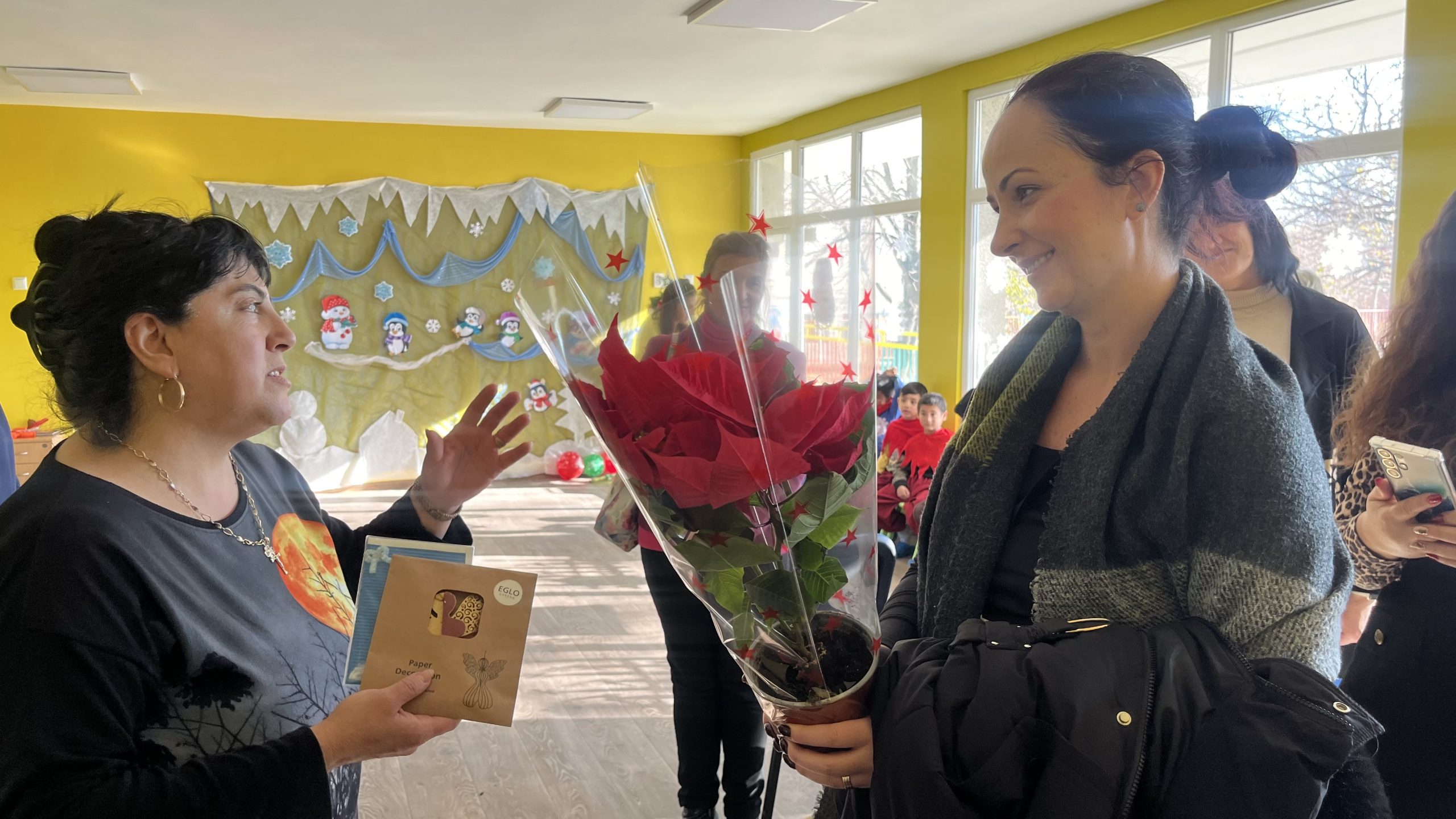 „Радвам се, че съм тук с вас на този така специален празник! Пожелавам ви много здраве, споделеност и успехи. Нека бъдат светли предстоящите празници и през новата година да бъдете все по-сплотени и задружни“, поздрави малчуганите зам.-кметът на община Стара Загора Надежда Чакърова. Тя подари на двете групи образователни игри с пожелание за още повече знания, но и разбира се – достатъчно време за забавления.