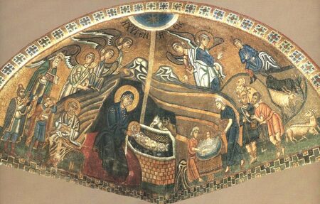 На снимката: Рождество Христово (мозайка, ХI век, манастир „Св. Лука“, Гърция)