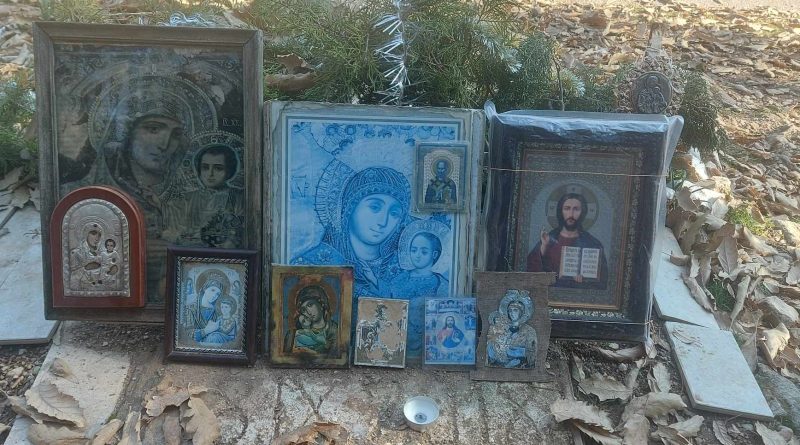 Преди 5-6 години, един от радетелите на делото, направи стойка и отля пред нея мини циментова площадка. Освен това, лично постави икона на Света Богородица, закупена от Йерусалим и осветена. След това християнка дари за мястото още една осветена икона на Светата Майка. И понеже на стойката имаше място за още една икона, след дни беше сложена дървена икона на Иисус Христос. С времето се появиха още много малки иконки на различни светци. Някои оставаха за постоянно, други – след като се заредят от силата на сакралното място, се прибираха от притежателите им.