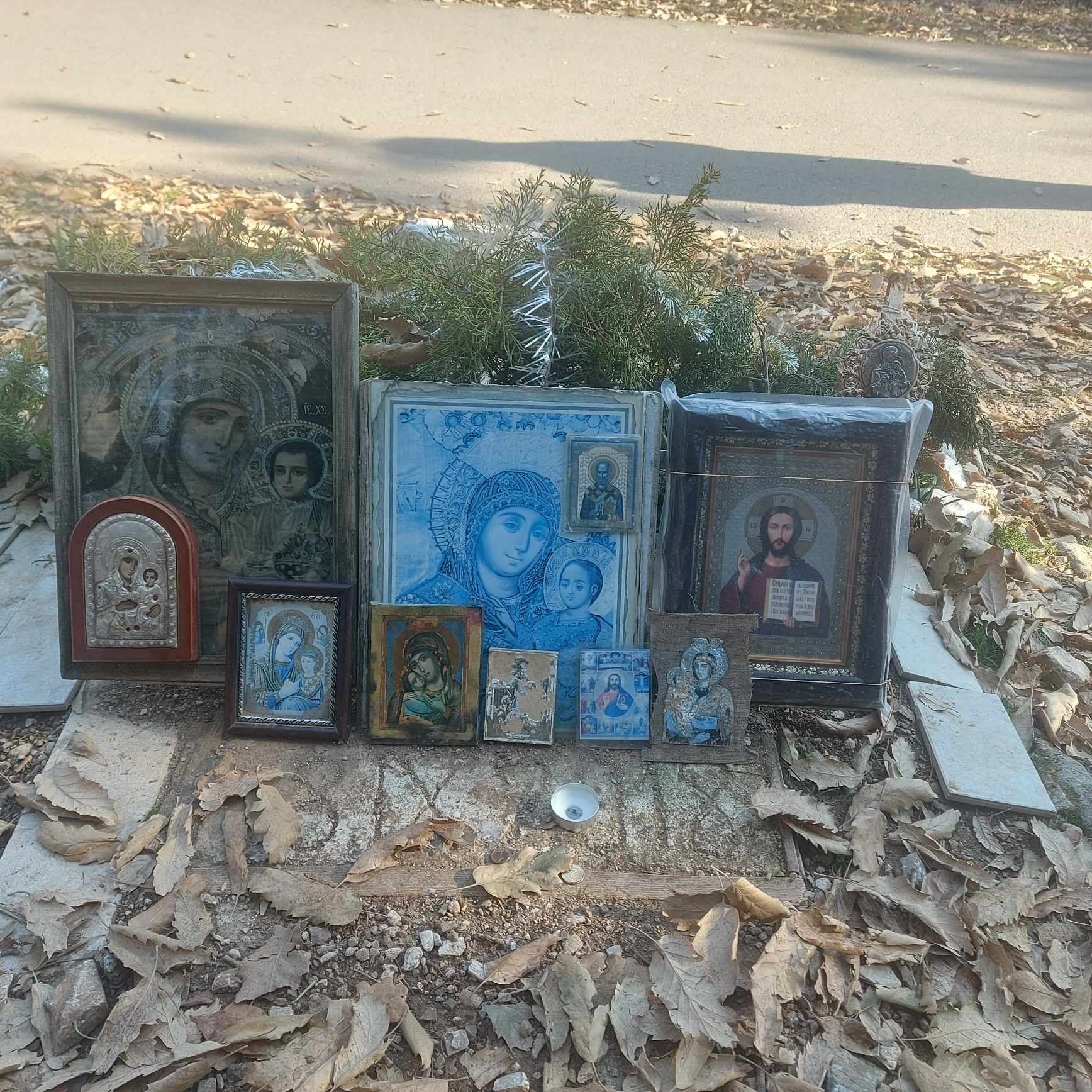 В уникалния парк „Митрополит Методий Кусев“ в Стара Загора има едно сакрално местенце, което събира и вярващи и невярващи. То се намира на 1200 (мои) крачки северно от храма „Св. преподобни Галактион и Емистима“, по източната алея на Парк „Митрополит Методий Кусев“, по пътя към Генералската чешма. От там до чешмата крачките ми са 550, а до (изоставената) детска градина са още 800. Така че горе -долу мястото с Иконите разполовява маршрутът от точка „А“ до точка „Б“.