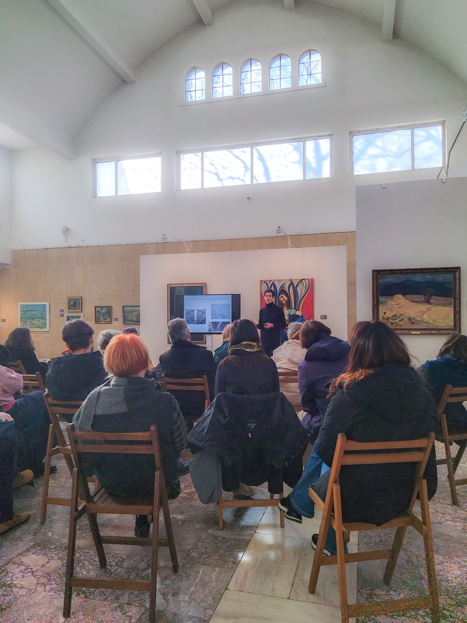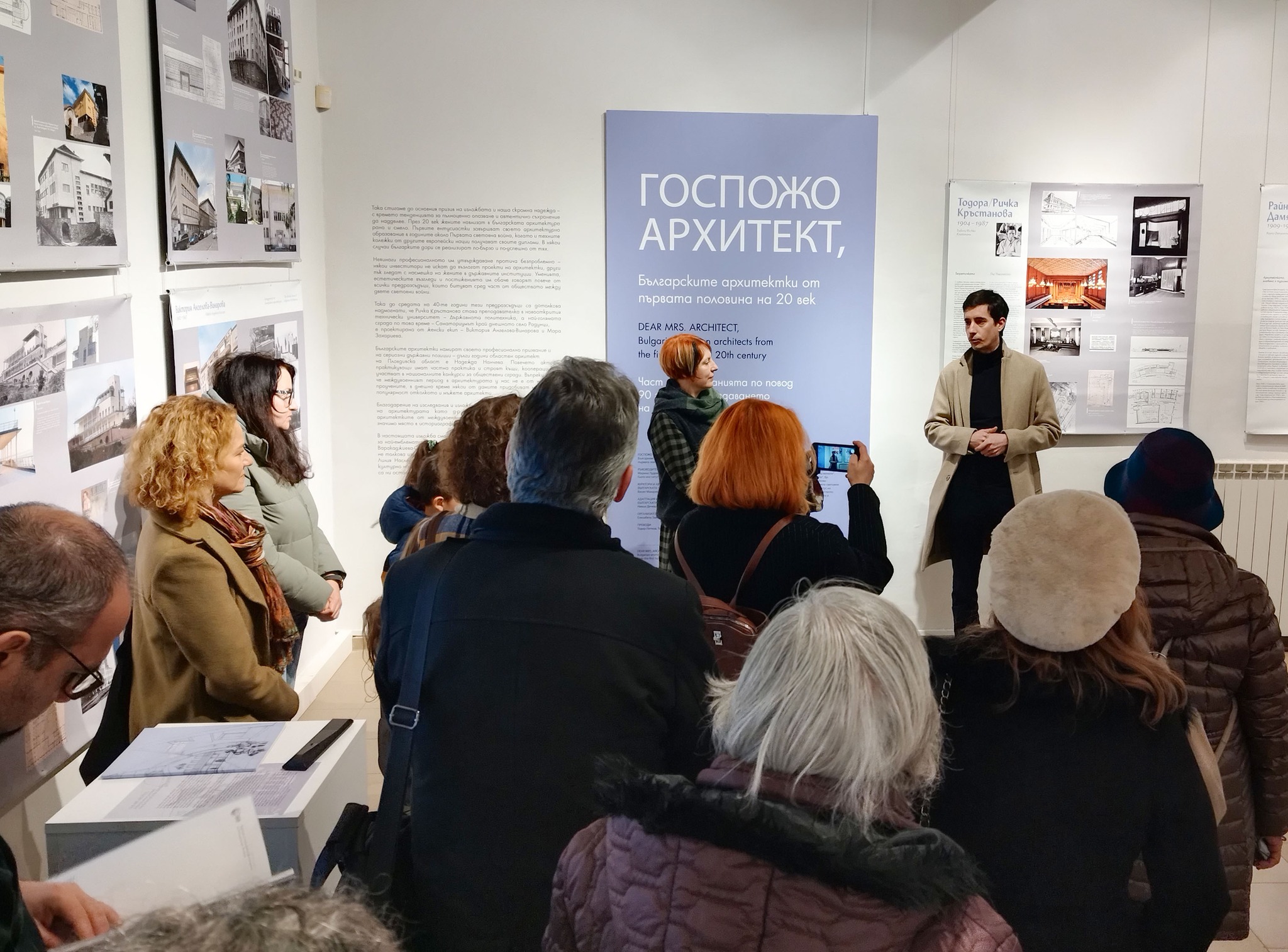 След церемонията по откриване на експозицията Теодор Караколев говори в беседата си за архитектурата в България между двете войни – Първата и Втората световни и ролята и мястото на жените архитекти в изграждането на нова България.