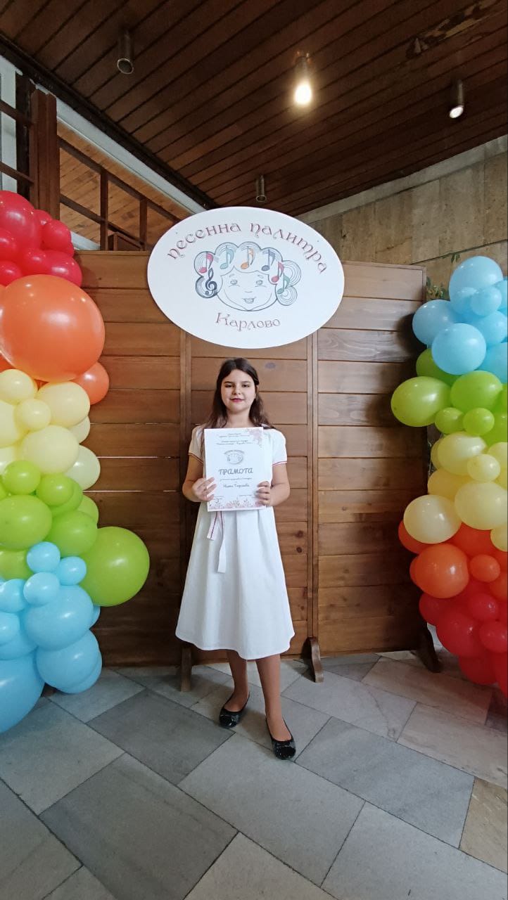 В раздел „Фолклор“ изпълнението на г-ца Динчева на песента „Зайди, зайди“ й донесе Второ място.