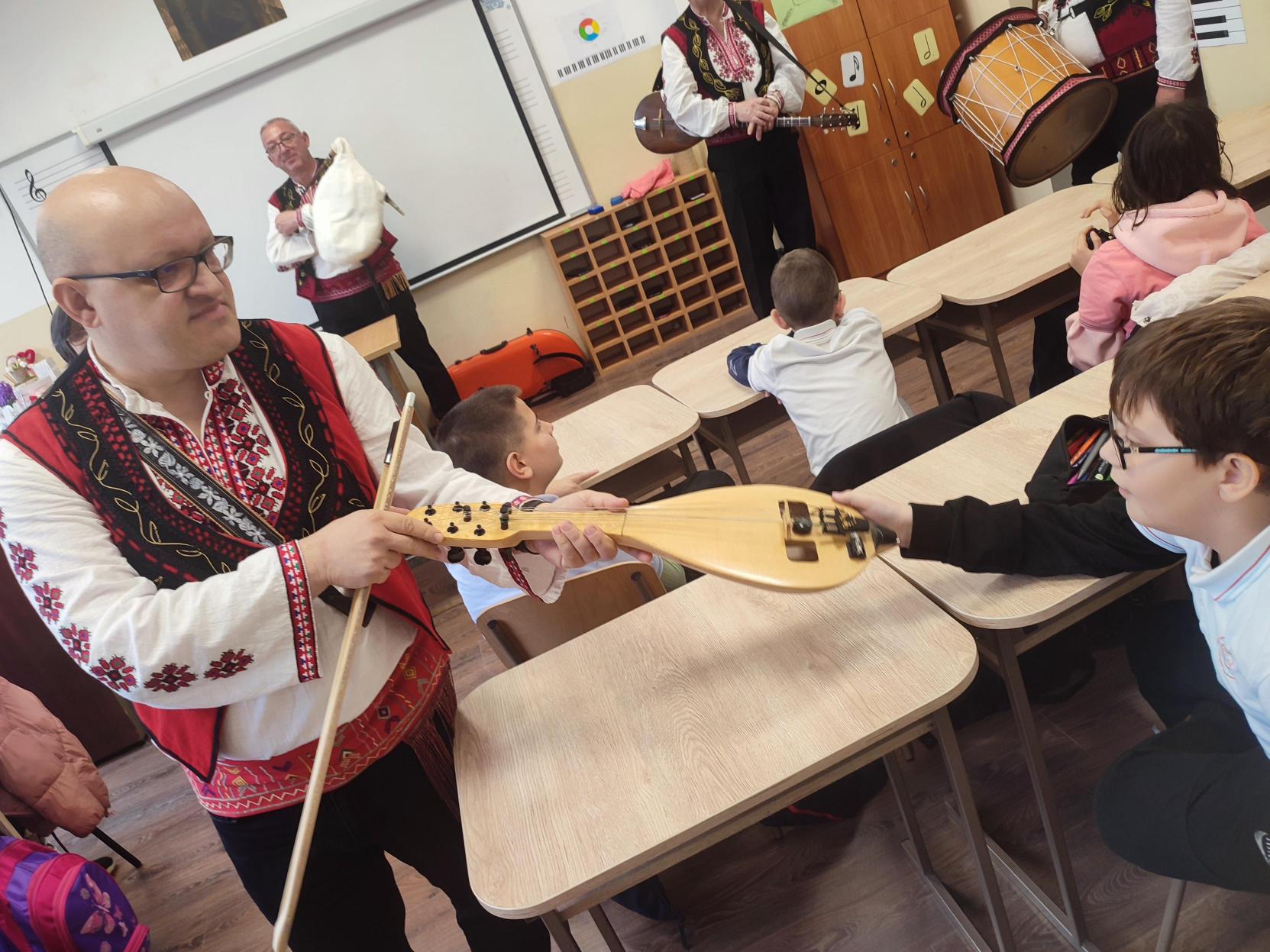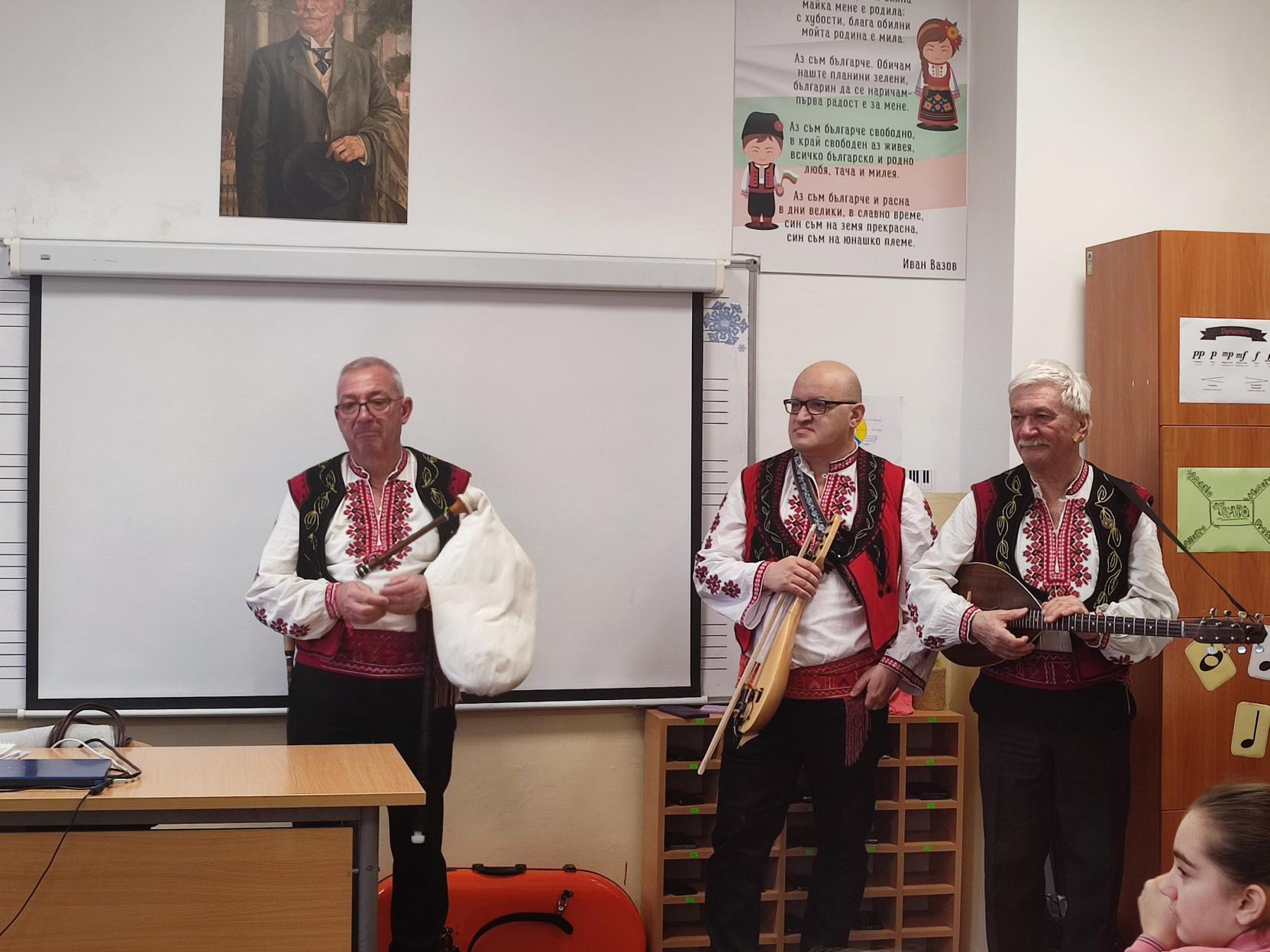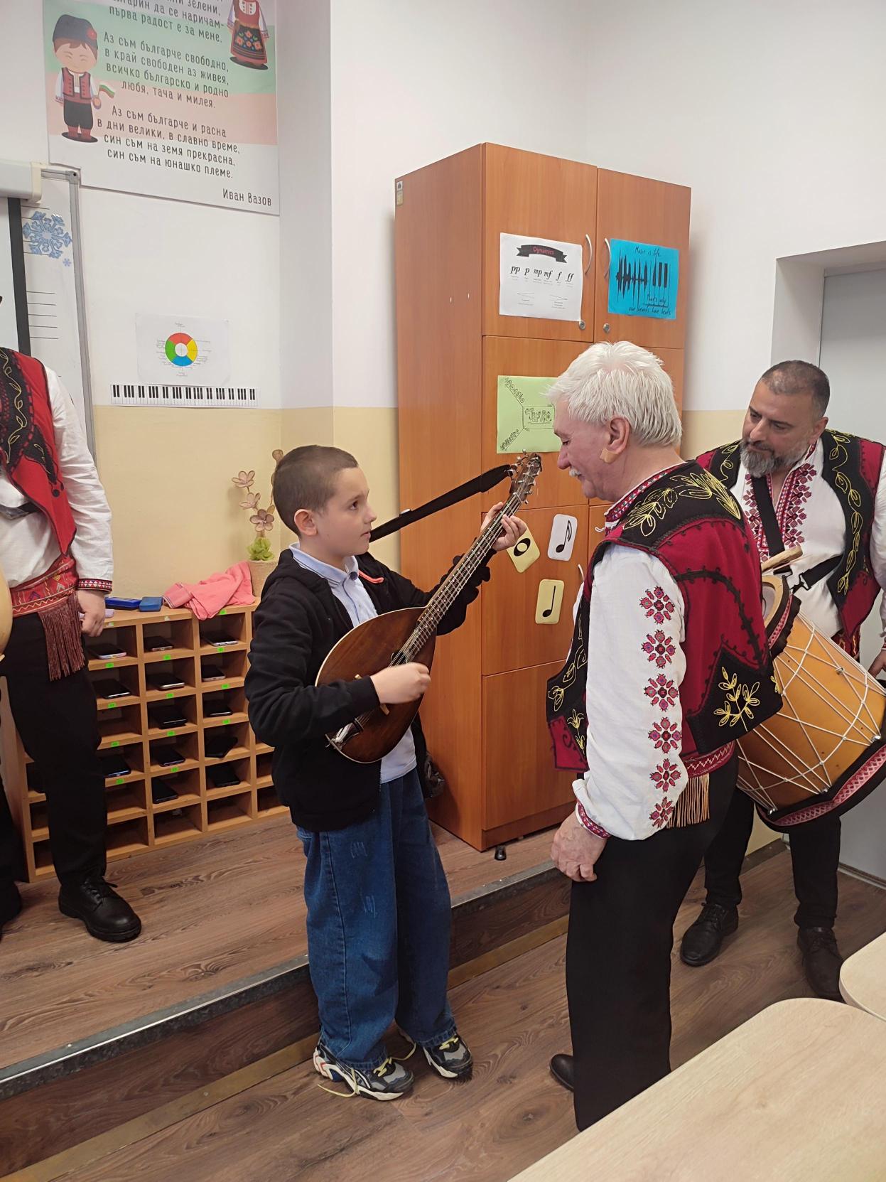Всичко това се случи благодарение на музикантите от оркестъра при Народно читалище „Свети Климент Охридски 1858г“ гр. Стара Загора . В лицето на г-жа Гинка Михайлова учениците имаха и чудесен разказвач, който по интересен начин им припомни колко уникален и ценен е нашият фолклор и колко важно е да го пазим и предаваме.