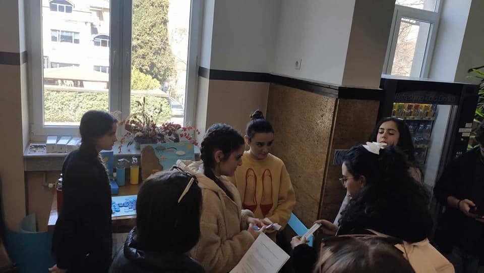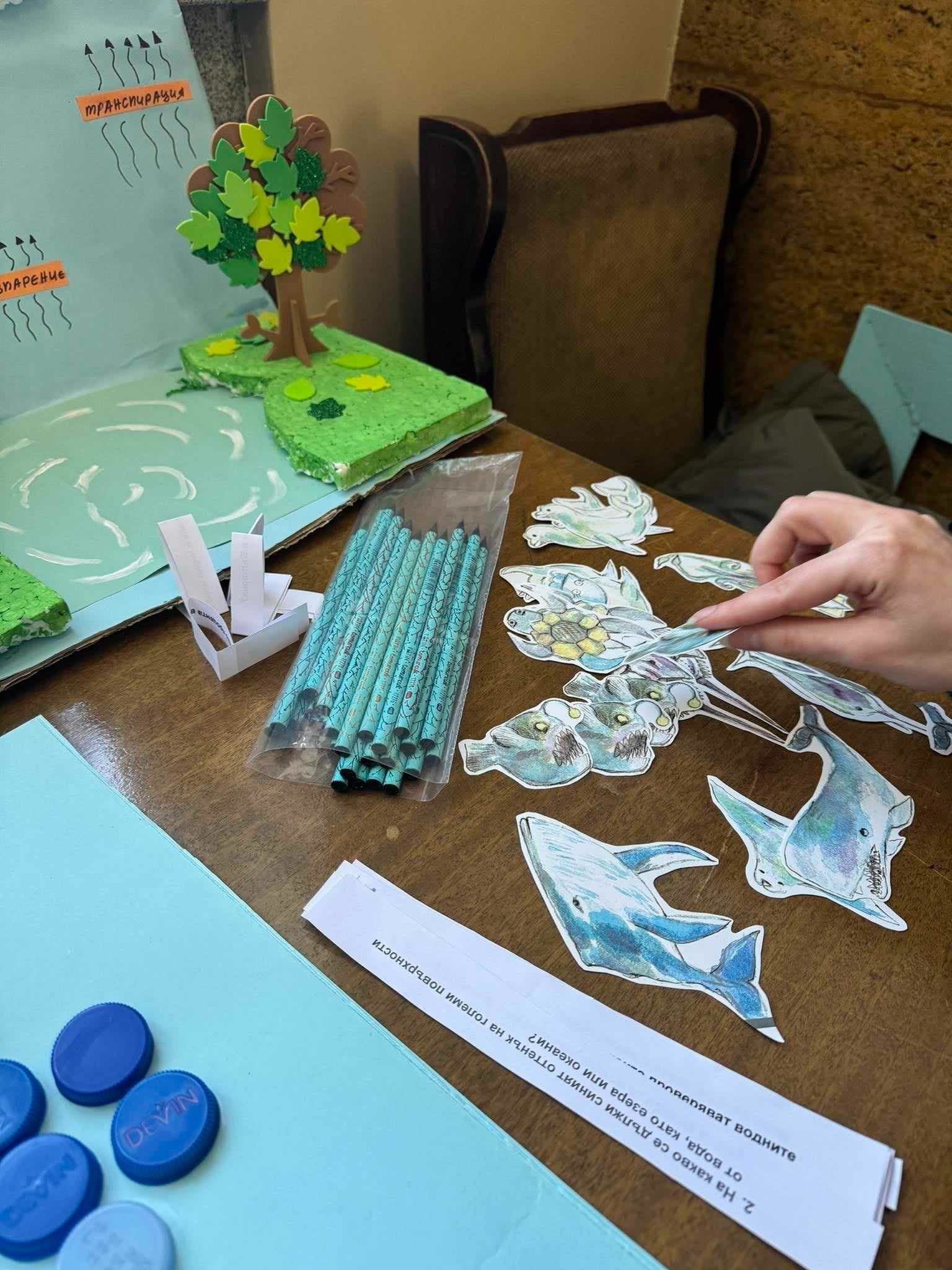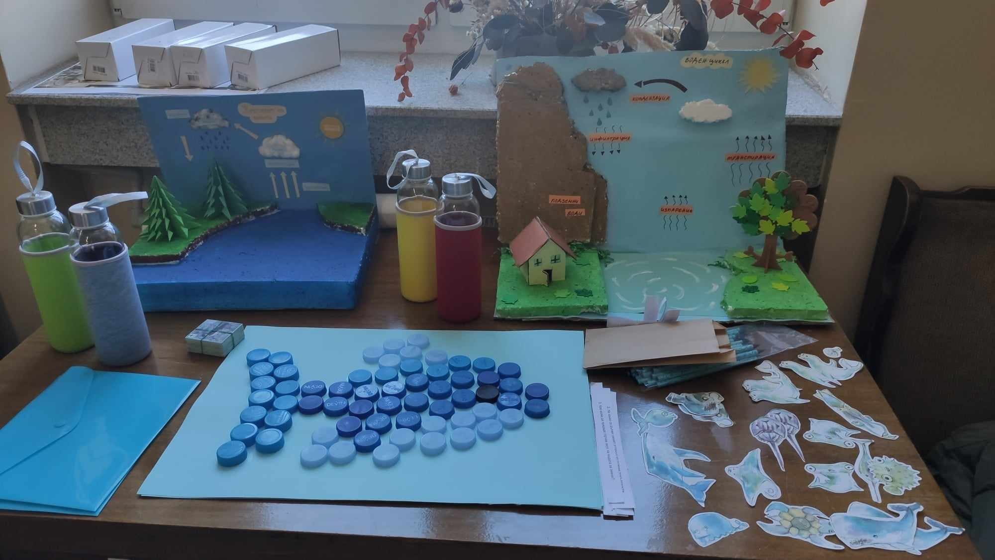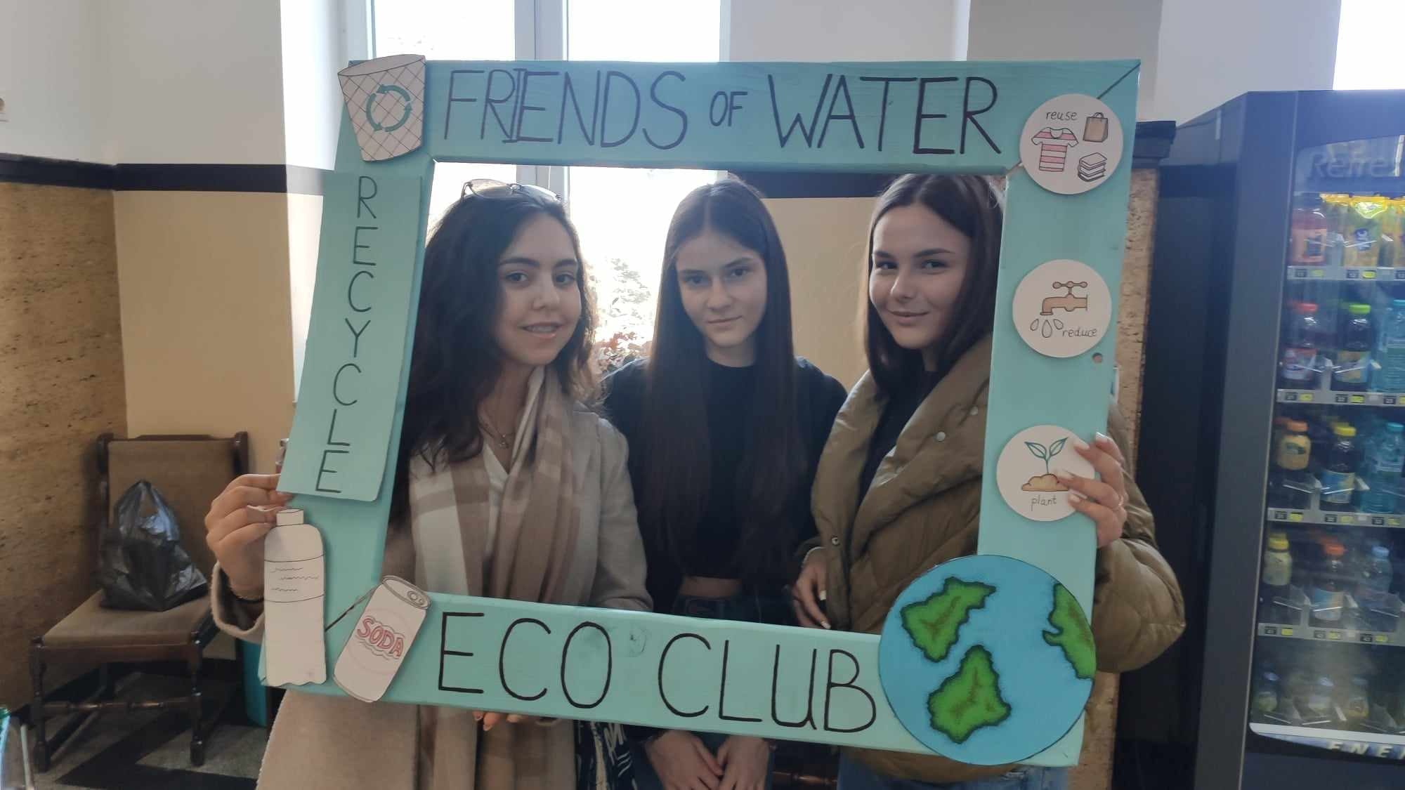 С викторина от любопитни факти и специално оформен кът от макети и информационни материали възпитаниците на екоклуб „Приятели на водата“ към ГПЧЕ „Ромен Ролан“ отбелязаха Световния ден на водата – 22 март, който тази година протича под слогана „Вода за мир“. Екозащитниците от десетите класове вложиха много време и усърдие в подготовката на своеобразния празник. Сред тях са Габриела Панкова от 10 „в“ и Радина Ганева и Кристиана Маджарова от 10 „ж“ . Те бяха подготвили макети, онагледяващи кръговрата на водата. Стефан Георгиев от 10 „ж“ умело се включи с изработването на информационно табло, свързано с любопитните факти по темата! Делфин, изработен от пластмасови капачки, призоваваше за рециклирането на отпадъците, замърсяващи ежедневно световните води! Пламена Колева от 10 „в“ собственоръчно сътвори красиви тематични стикери, които станаха подарък за отговорилите вярно на въпросите от викторината. Най-активните участници получиха стъклени шишета за вода и други предметни награди. Много настроение и пролетна емоция изпълниха училищното фоайе на втория етаж! Всички участници научиха много нови и любопитни факти за водата.