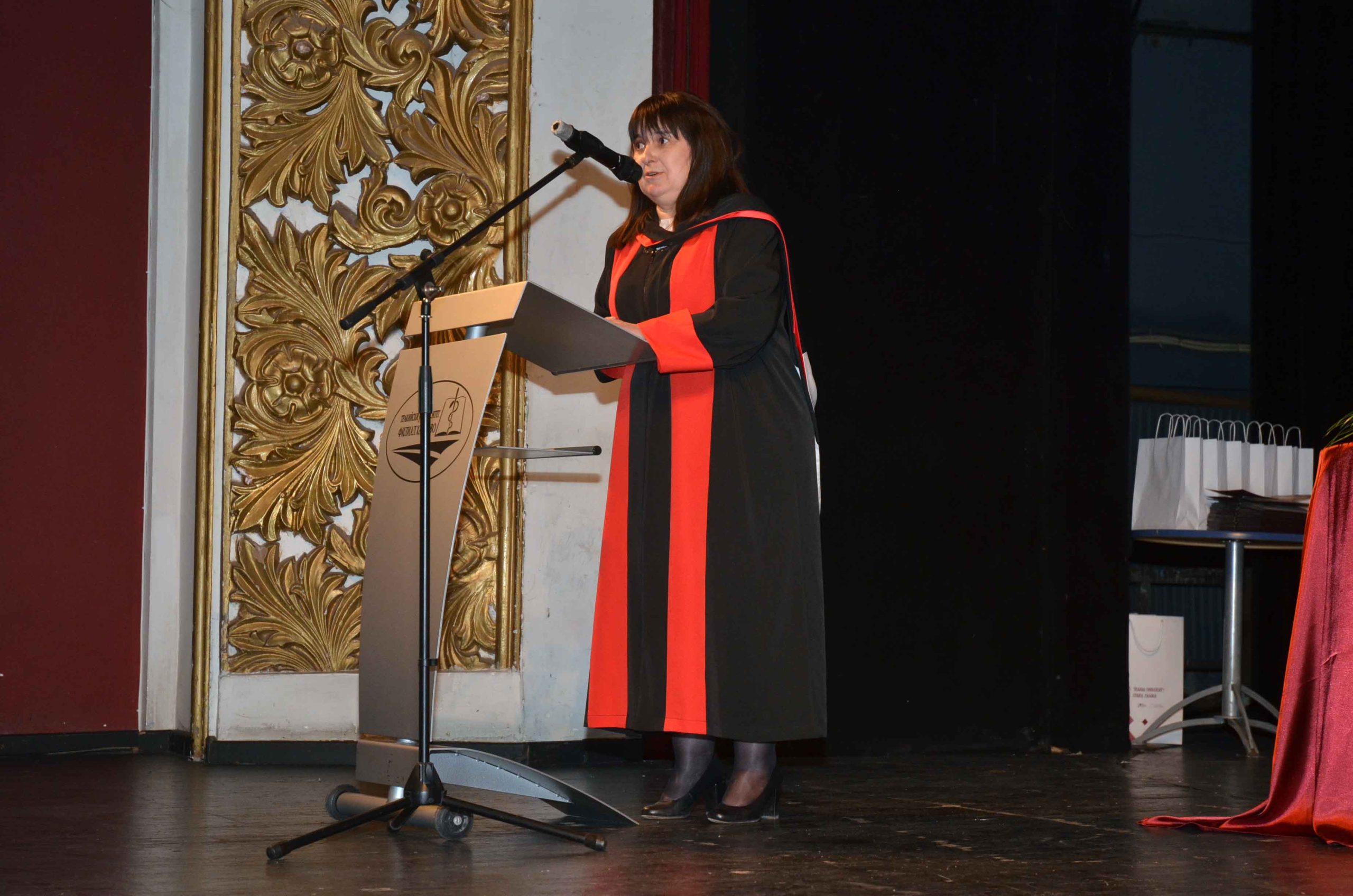 “Да посрещаш новия живот, да даваш обич без да искаш нищо в замяна, да бъдеш търпелив, милосърден, всеотдаен, да работиш за здравето и за живота на другите, пренебрегвайки себе си – това е призвание. Аз вярвам, че Вие – скъпи абсолвенти – не просто сте призвани, но и притежавате всички качества и нужните познания да практикувате благородните професии на акушерката и медицинската сестра, които сте избрали! Да бъдете онези ангели в бели престилки, които носят радост, утеха и надежда на своите пациенти! На добър час!“ – каза в словото си към завършващите проф. Нели Грозева, зам.-ректор по учебна и информационна дейност на Тракийски университет.
