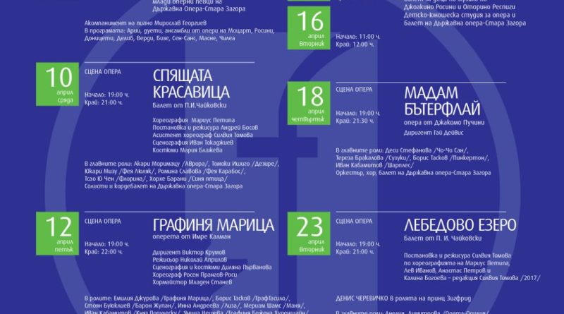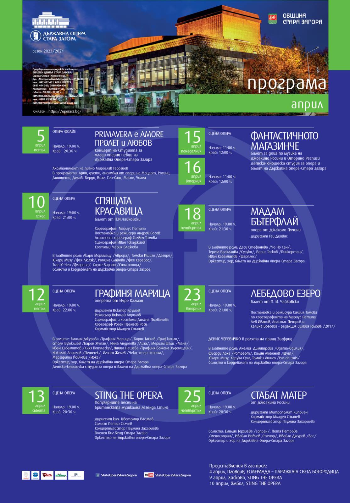 Заповядайте в Държавна опера Стара Загора през месец април 2024г.