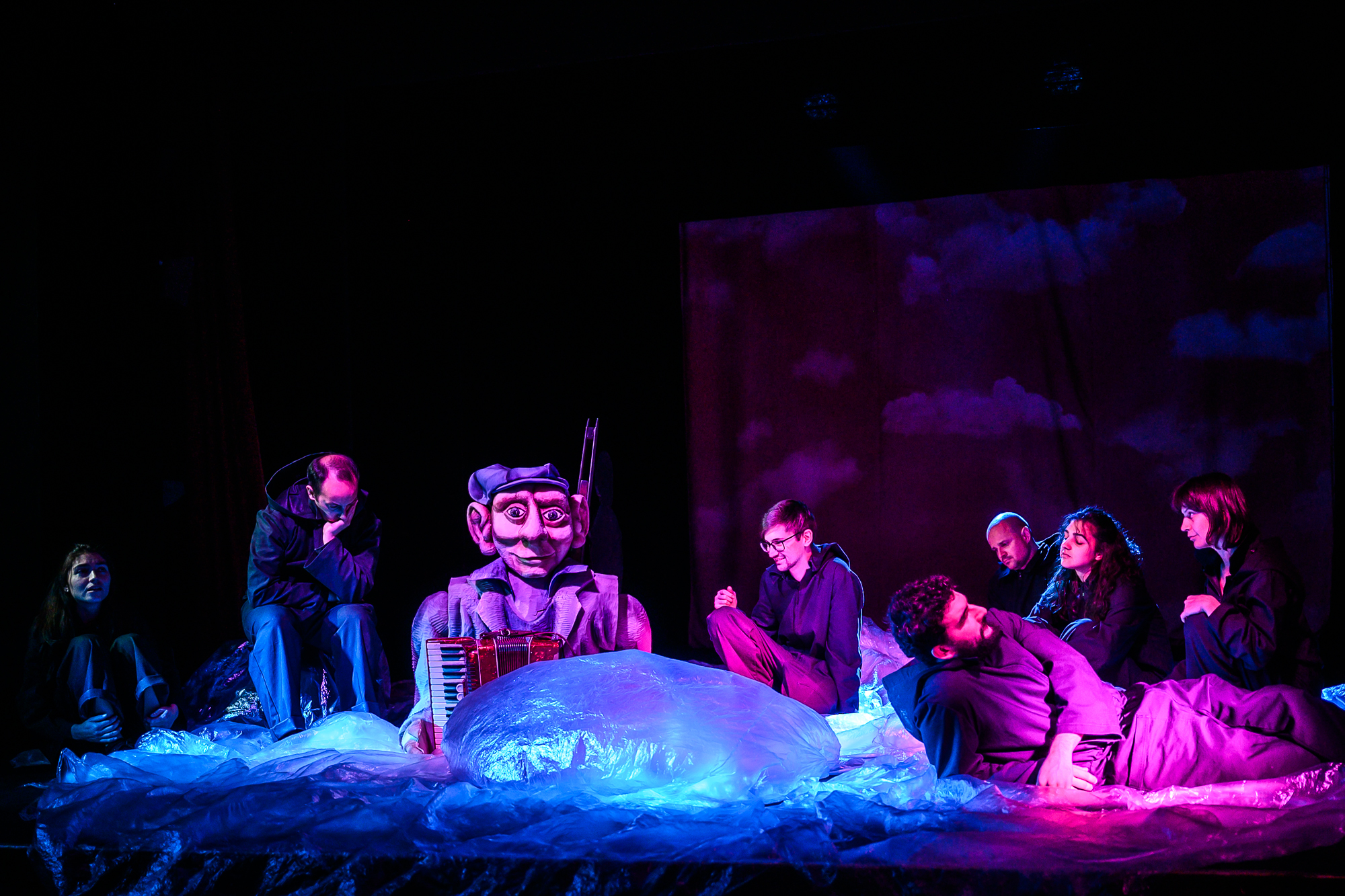 „Свечеряване, късни отблясъци от залез, по- скоро една оранжево-лилава ивица, която пресича хоризанта. Все едно времето е спряло в онази минута, когато светлината вече си е отишла, но мракът още не е дошъл. И в тази дълга минута се случват историите тук. Годините могат да текат по- бързо от нея, но минутата си остава“, казва в резюме за пиесата си авторът Георги Господинов.
