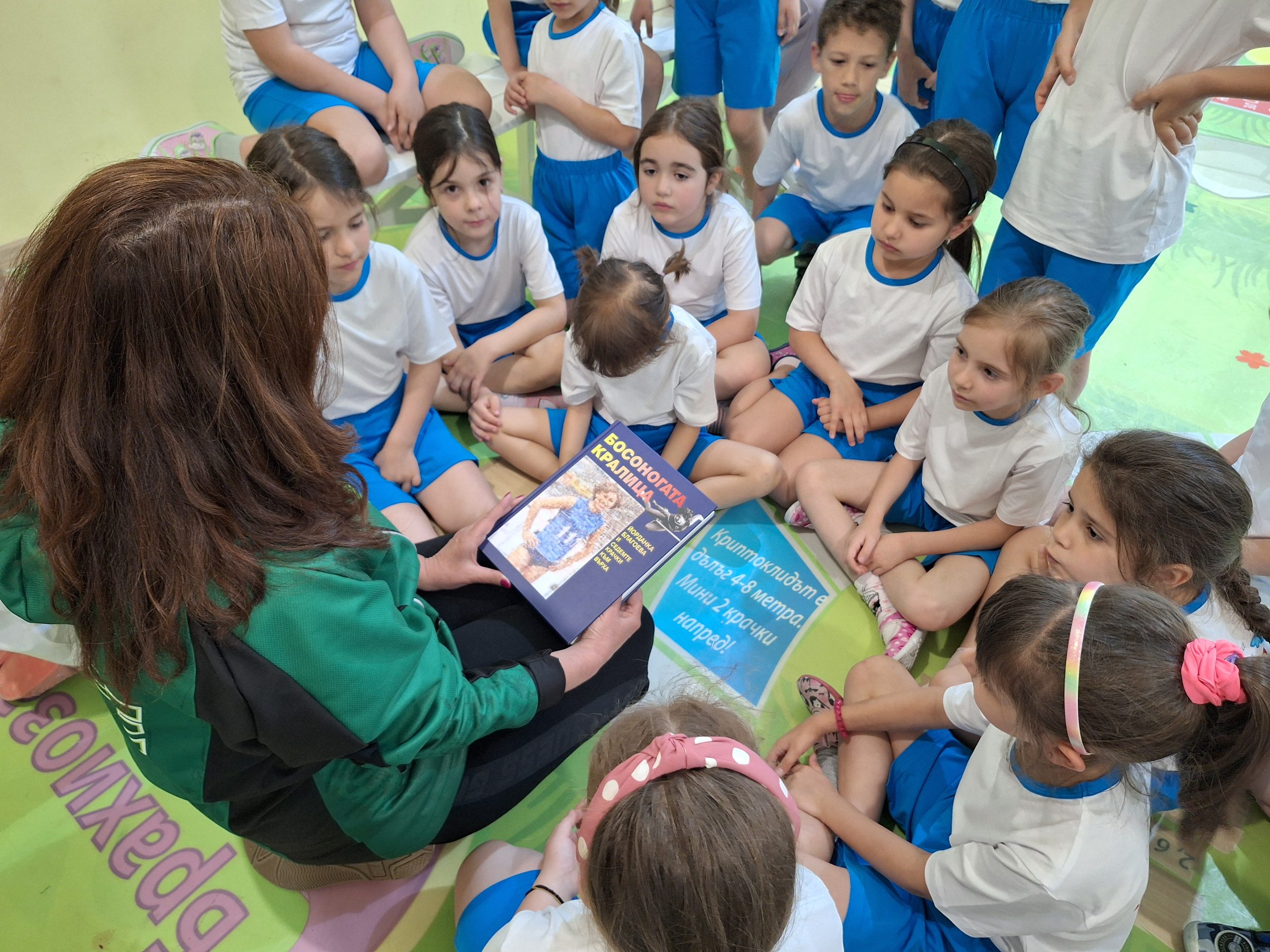 А гостенката днес, която чете на малчуганите, Емилия Драгиева, също е българска лекоатлетка, участничка в няколко международни състезания в края на 80-те години, носител на бронзов медал на световното първенство в зала в Индианаполис през 1987 година.