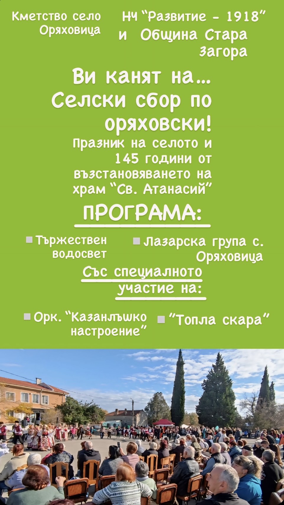 Организатори са Кметство с. Оряховица и местното читалище „Развитие – 1918”.