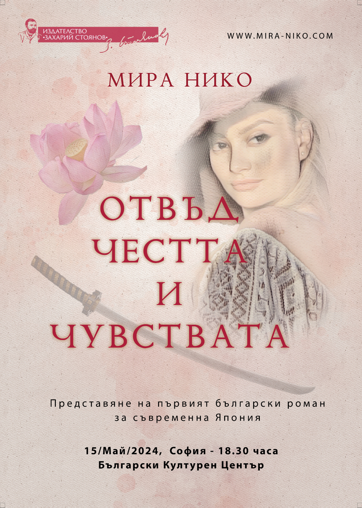 На 16 май 2024г. от 18:30 ч. в салона на Регионална библиотека „Захарий Княжески“ писателката Мира Нико ще представи романа си за съвременна Япония – „Отвъд честта и чувствата“. За творчеството на авторката ще говори литературоведът  Иван Гранитски.