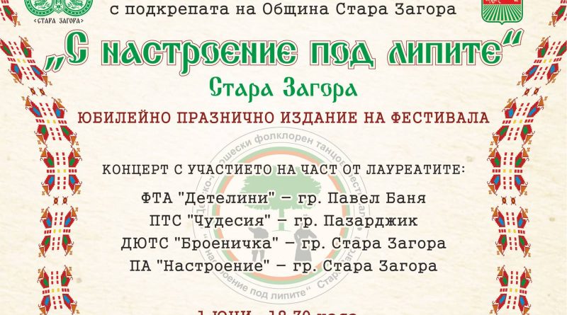 Концерт по повод петото издание на фестивала „С настроение под липите“ организират в Стара Загора