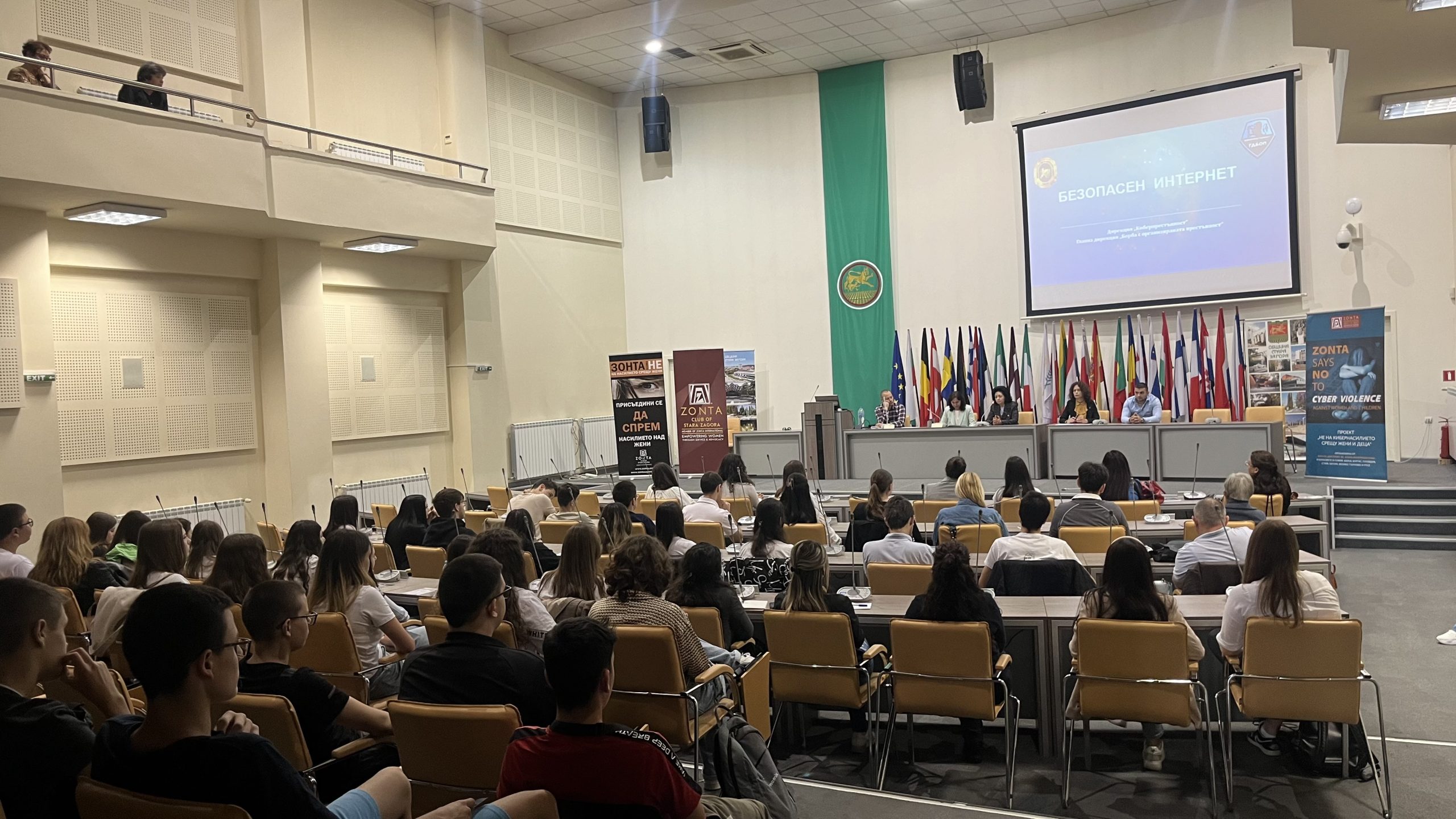 Общинската зала „П. Р. Славейков“ събра ученици и представители на образователни институции, по покана на СНЦ „Зонта клуб Стара Загора“, на дискусия с представители на Главна дирекция за борба с организираната престъпност /ГДБОП/ на тема „Не на кибернасилието срещу жени и деца“.