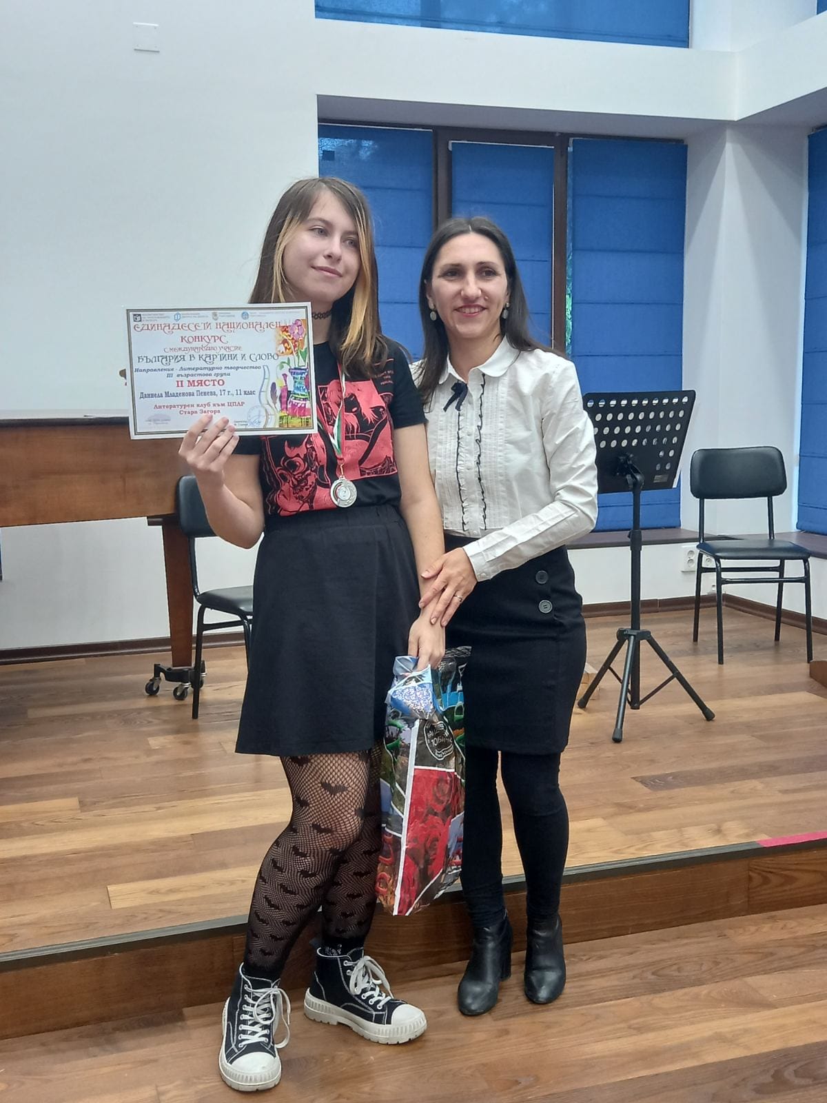 Ема Станчева представи своя разказ „Часовниковата кула“, който бе отличен с почетното първо място в Национален литературен конкурс НЛК на Издателство Многоточие – „Истински неща“. За високите си постижения в областта на литературата и обществените дейности абитуриентката бе номинирана за наградата „Млада Загора” тази година.