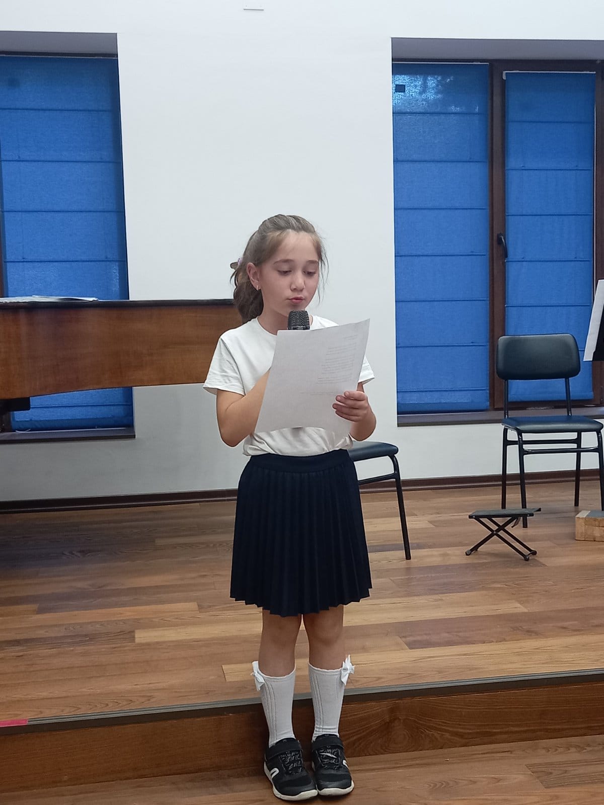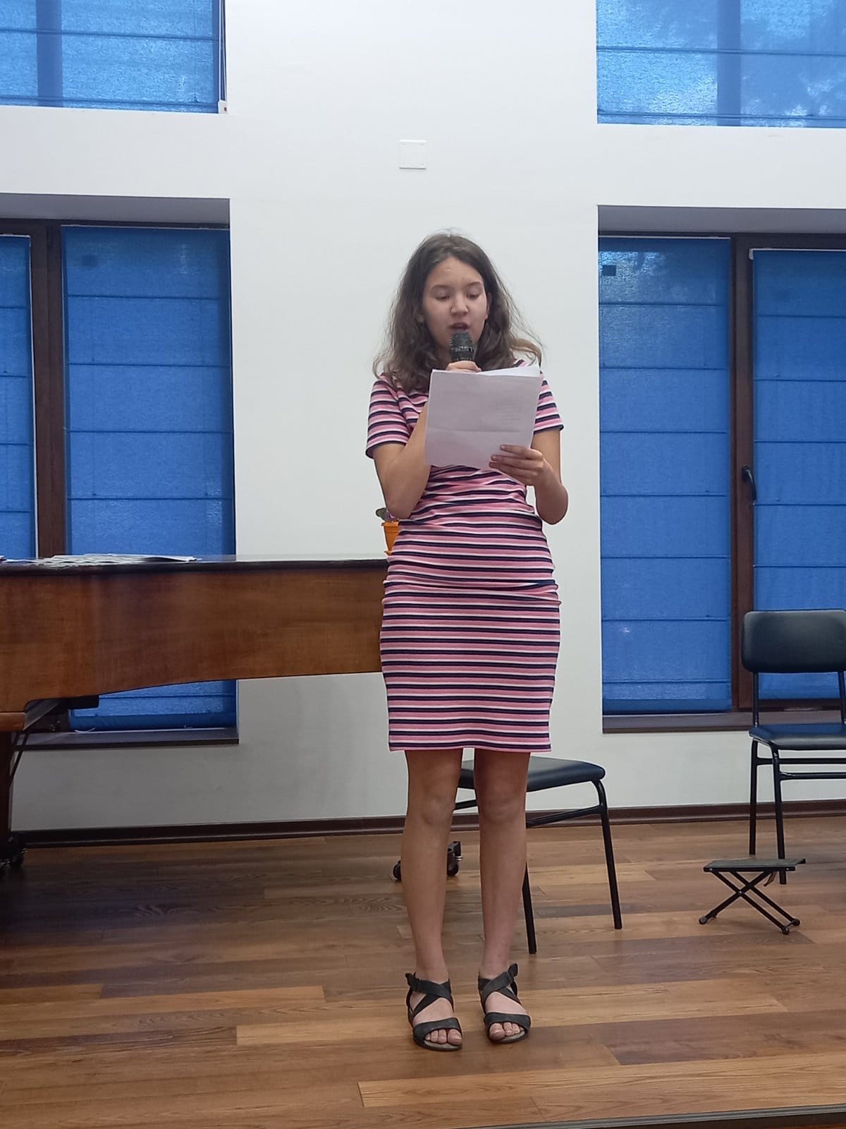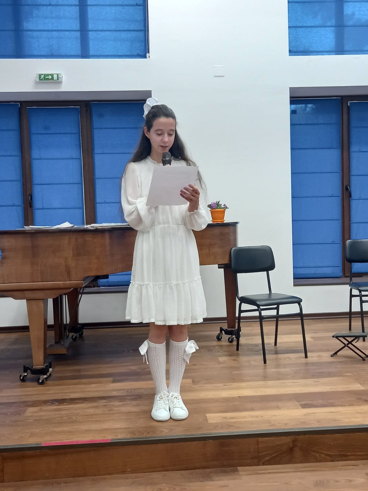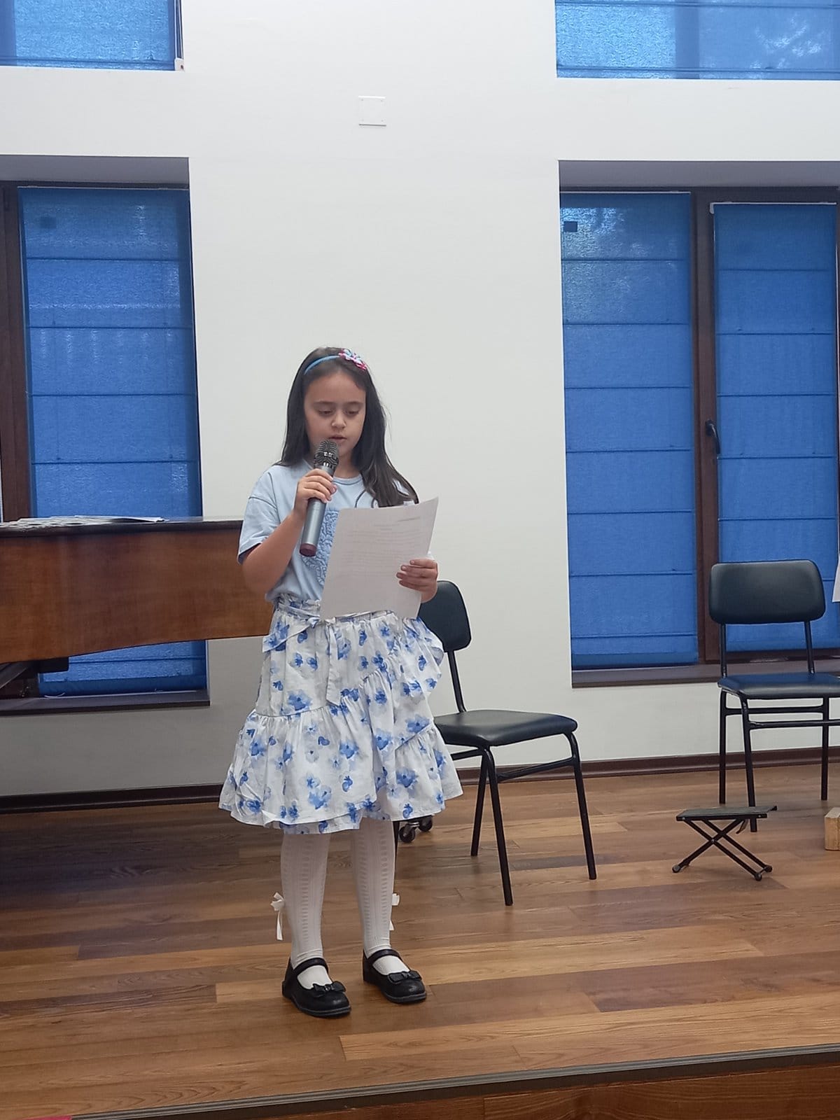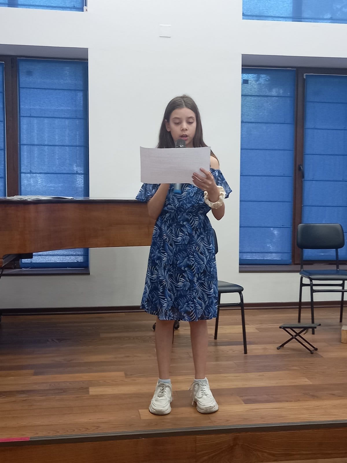 Литературно-музикалната вечер завърши със стихотворение на Мария – Роза, с което тя спечели първо място в Международния литературен конкурс „Вълшебното перо“ за 2024 г. на българското училище „Иван Вазов“ в Париж. Стиховете на Мария-Роза са  оценени най-високо сред 630 творби поезия и проза, изпратени от българчета, които живеят в 15 различни страни по света. Заради своите литературни успехи тази година Мария-Роза стана носител на Наградата „Млада Загора“.