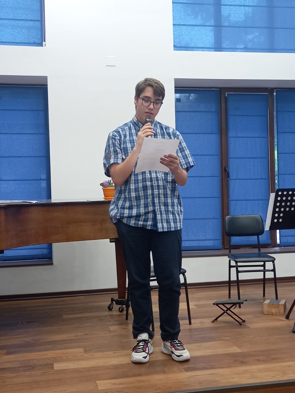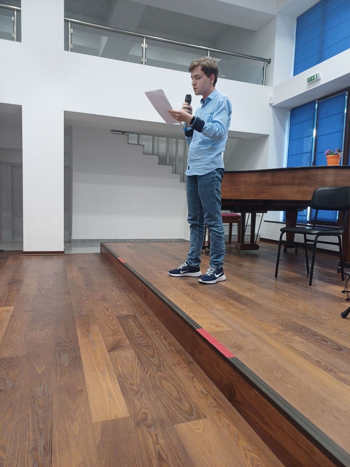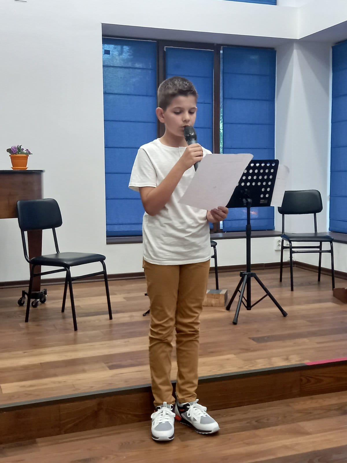 Виктор Маринов представи стихотворението си „Приятели“, което бе отличено с второ място в НЛК „Поздравих пролетта, поздравих младостта“. Виктор развълнува публиката и с есето си по цитат от Левски и то не какъв да е, а думите „Гледай народната работа повече от всичко друго, повече от себе си да я уважаваш!”