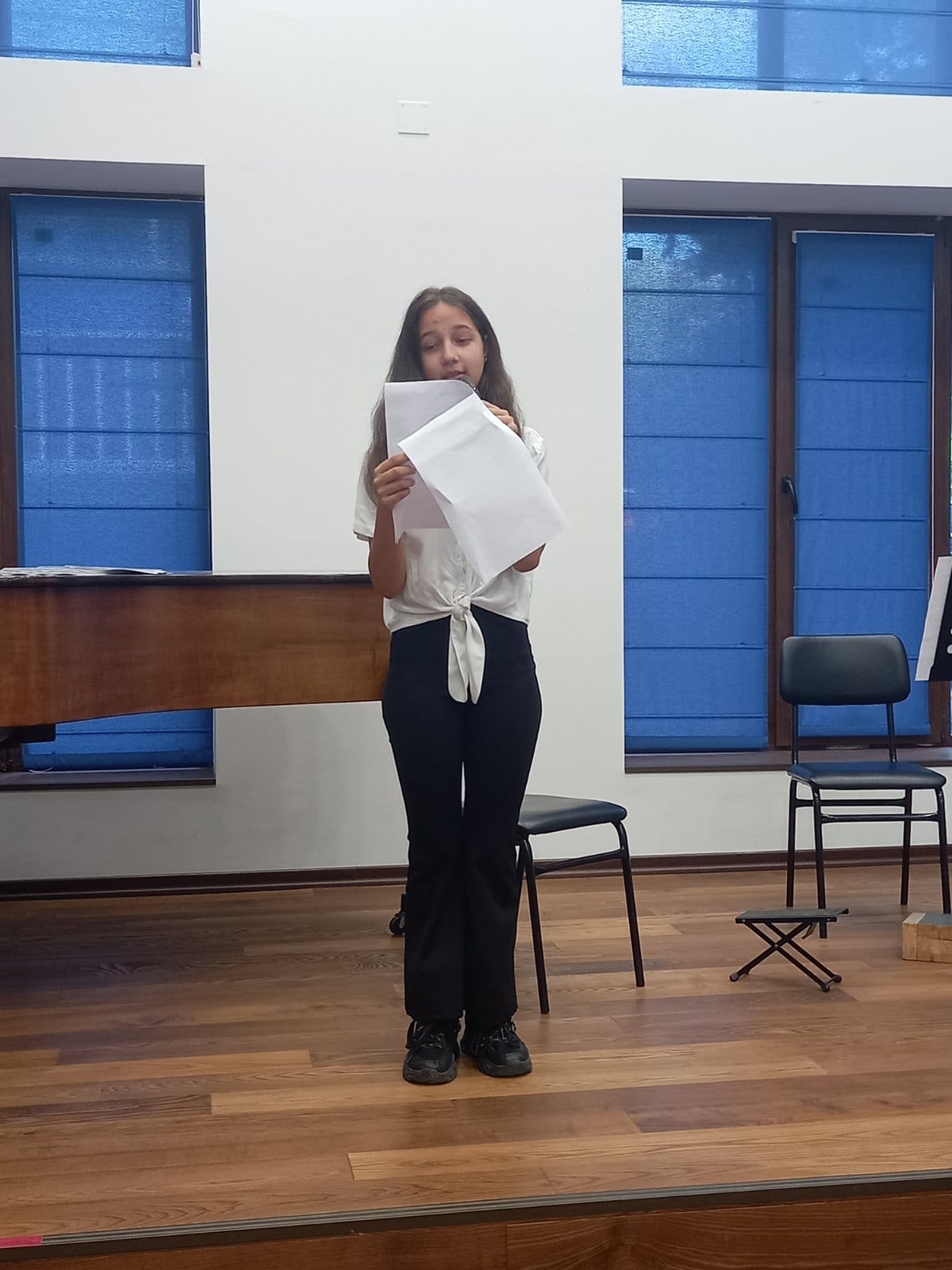Ива Георгиева  показа как театралното майсторство безупречно се съчетава с литературния талант. Тя представи стиховете си „Душевен мир“ и „Животът е…“. Тази учебна година Ива бе отличена с първо място в Зимния ученически конкурс „Перо от лед“, поощрителна награда от НЛК „И мисля аз, че ти си тя“ – Чирпан и поощрение в Националния конкурс за стихотворение „Животът е …“.