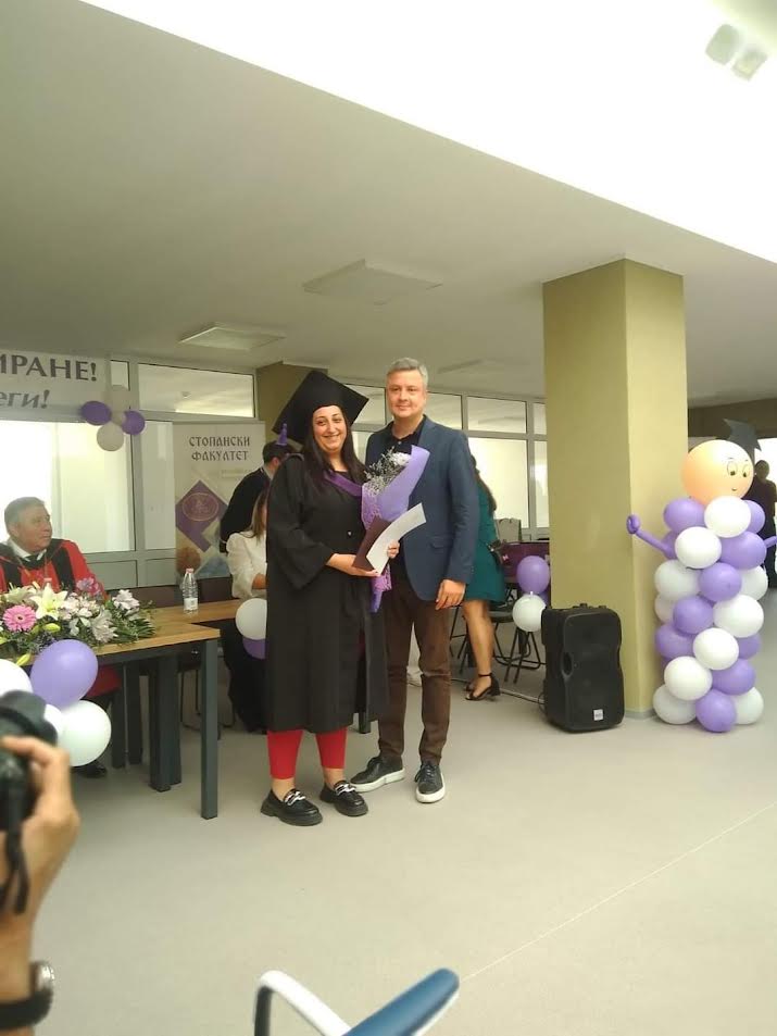Дипломата си и благопожеланията на зам.-кмета Радостин Танев получи една от тях – магистърът по специалността „Икономика и мениджмънт на човешките ресурси“ Ивелина Андреева.