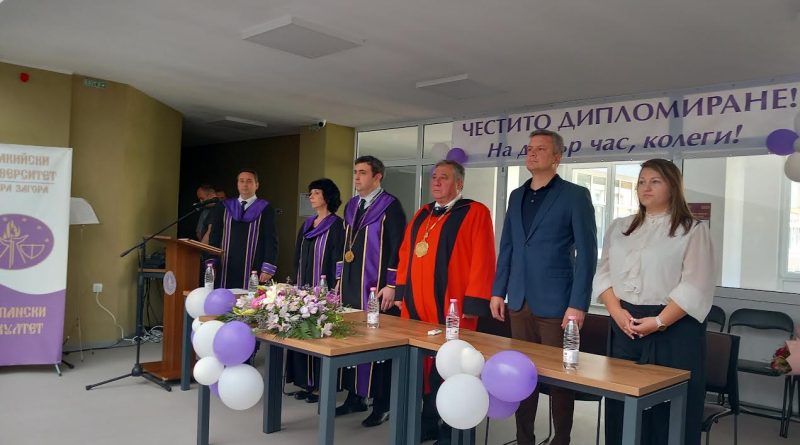 „Ректорът проф. д-р Добри Ярков ви пожела да се задържите в България, а аз, уважаеми абсолвенти, ви призовавам да останете в Стара Загора – тук има къде да се реализирате професионално!“. С този апел зам.-кметът на Община Стара Загора Радостин Танев се обърна към студентите бакалаври и магистри от икономическите специалности на Тракийския университет. „Община Стара Загора е подкрепяла и ще подкрепя винаги Тракийския университет, защото без него и без тези млади хора, които се вливат в икономиката на Стара Загора, не можем да очакваме да надградим още развитието, което имаме в момента“, изтъкна зам.-градоначалникът.