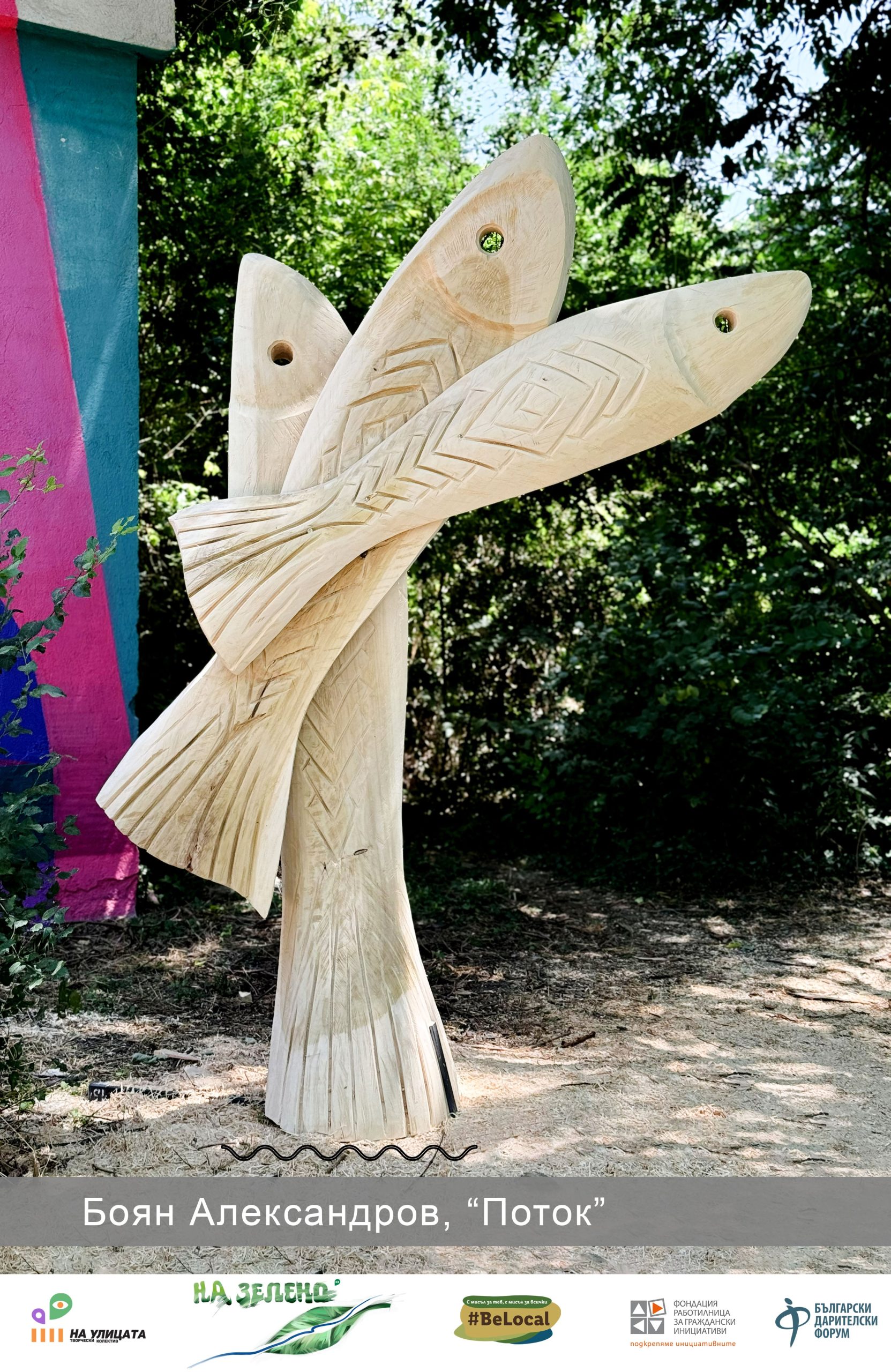 „Поток“ на Боян Александров е проектирана за конкретния пленер, като идеята се свързва с реката и мостовете на Бедечка. Творбата изобразява риби в движение и е символична препратка към живителната сила на природата, семейството и християнството, която е акцентирана и в самото заглавие.