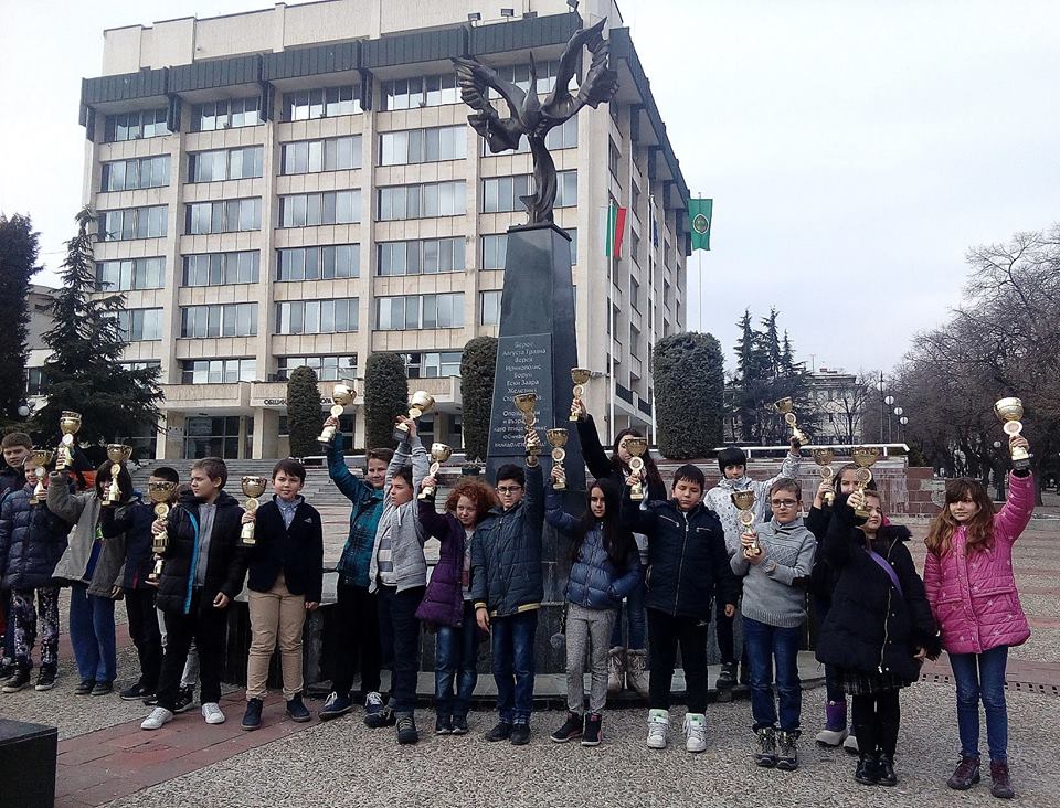 Победителите от едно от изданията на клуб „Математически таланти“- пред община Стара Загора