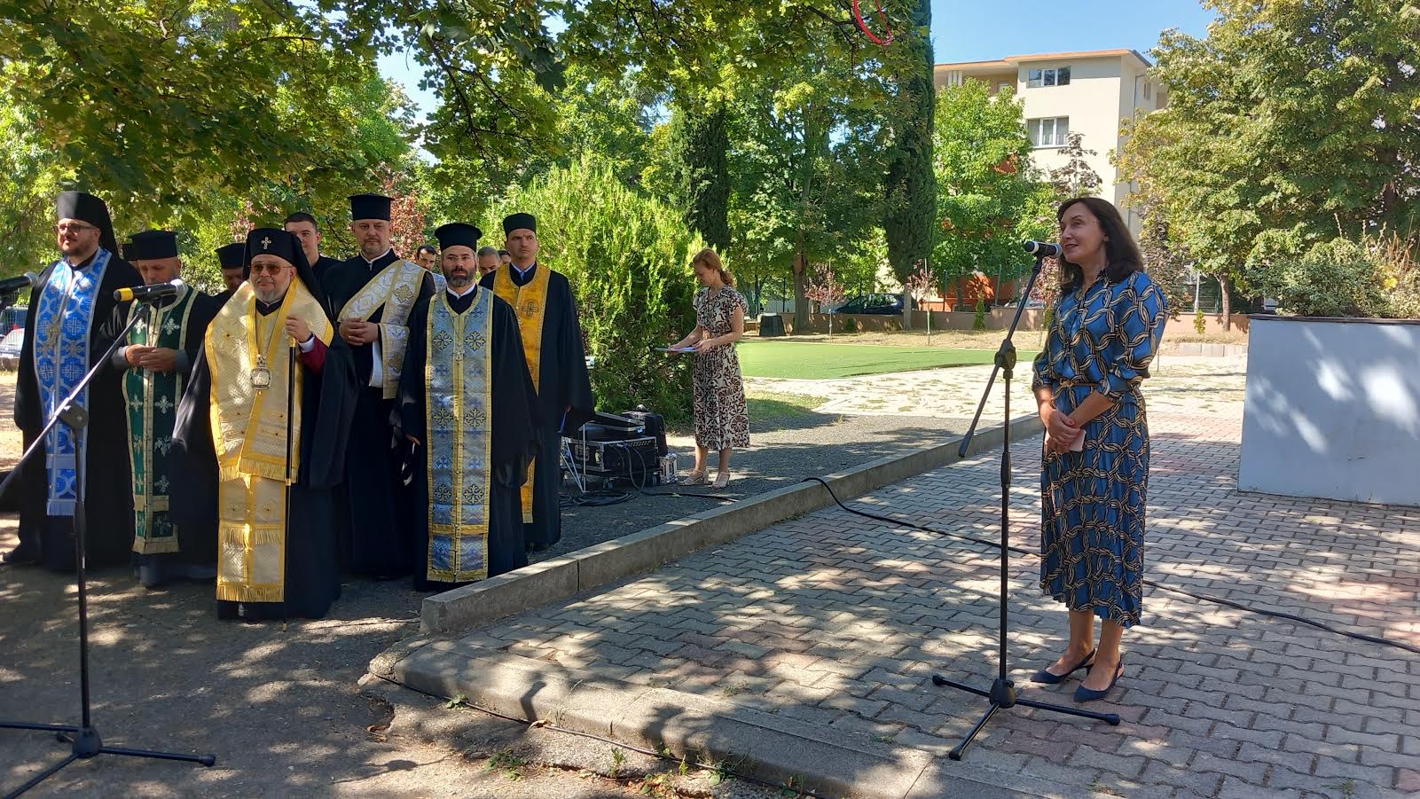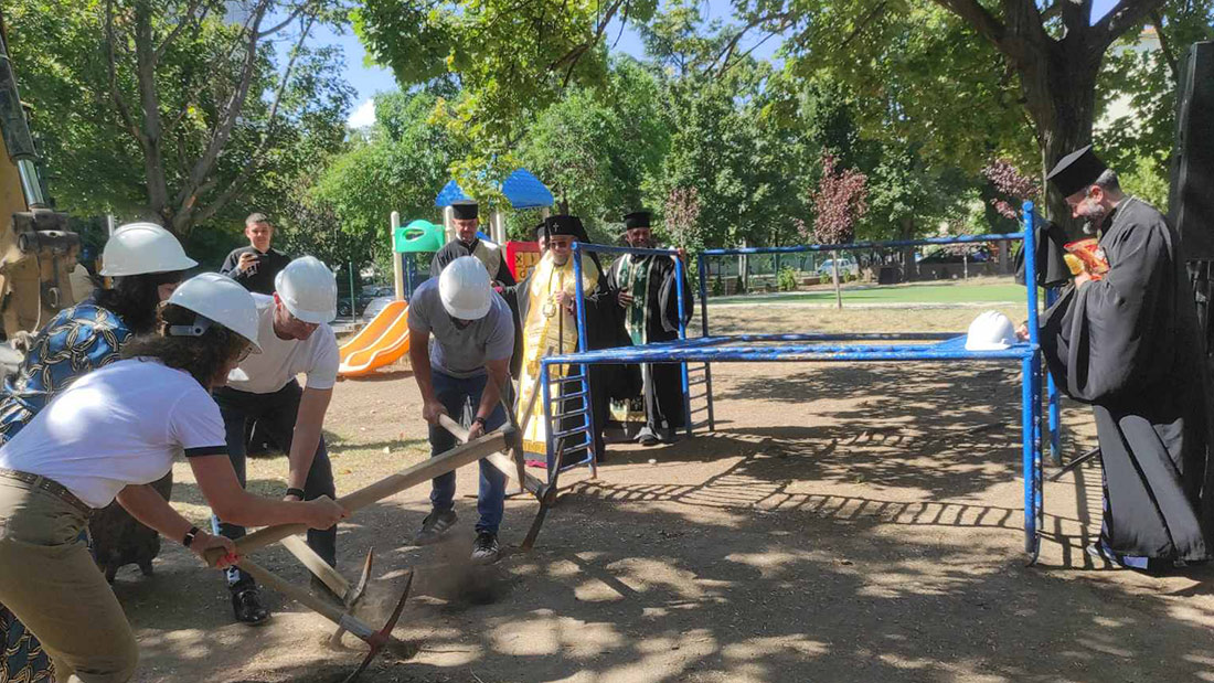 Арх. Паскалев, г-жа Чакърова и представители на фирмата изпълнител направиха символичната първа копка, благословена лично от митрополита.
