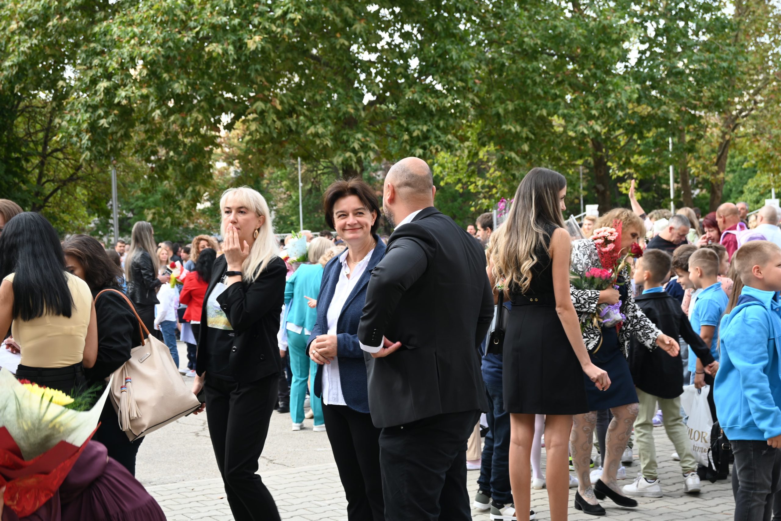 Водещите на училищната телевизия приветстваха най-малките ученици, които тази година наброяват 96, с топли думи и пожелания за успешен старт. Те споделиха,с гостите и училищната общност новини за предстоящата учебна година, като по този начин създадоха още по-голямо празнично вълнение и очакване за приключенията, които предстоят.