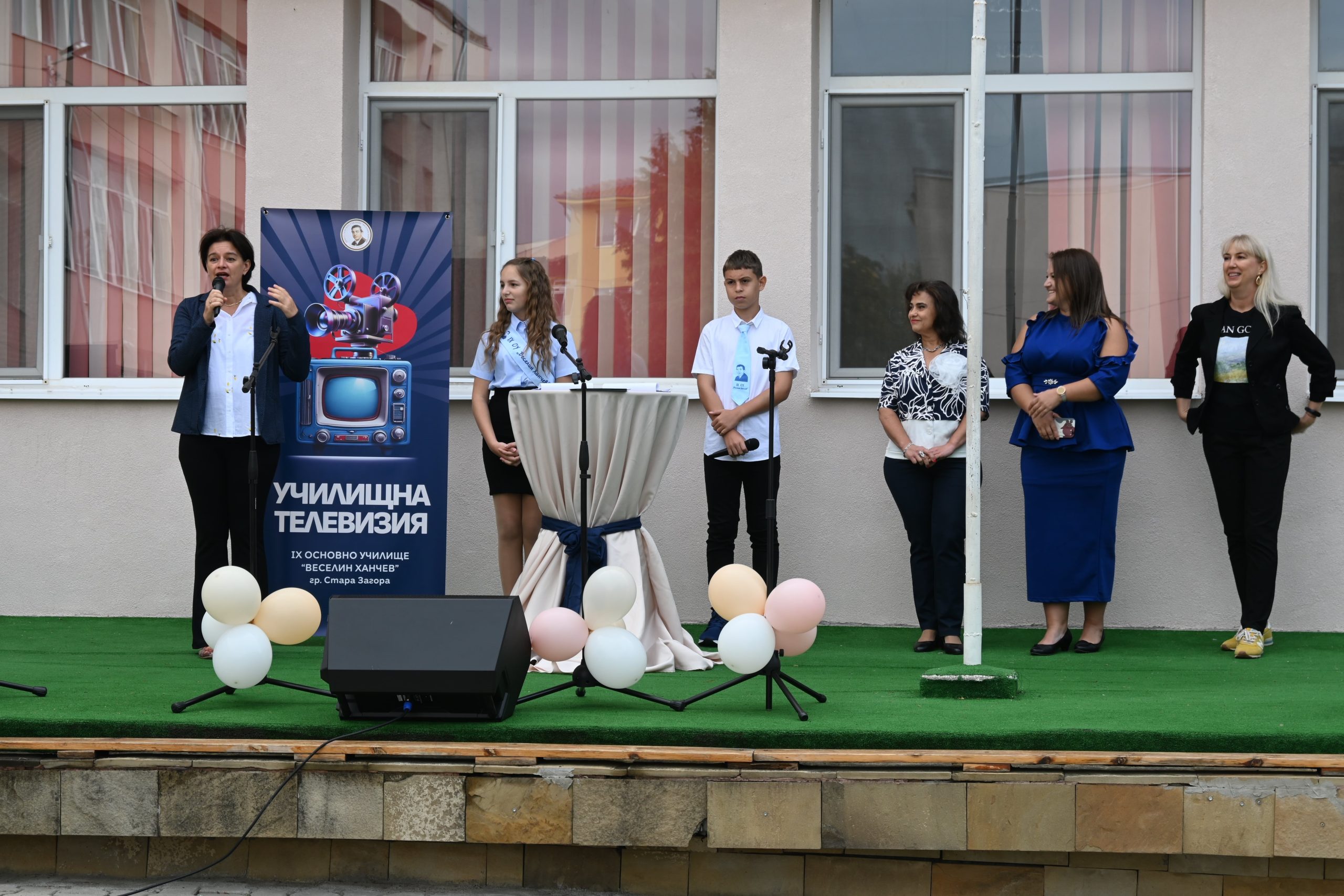 Новата учебна година в Девето основно училище започна с вълнуващо и иновативно събитие – първото по рода си откриване в телевизионно студио. Училището разполага със собствена телевизия, която го прави едно от малкото учебни заведения в страната и единствено в Стара Загора с такава възможност за ученици и учители.