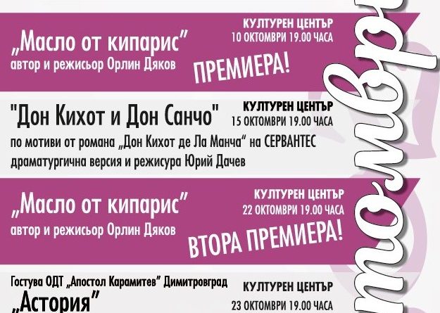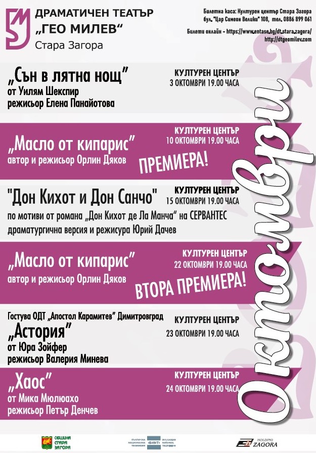 Програма за месец октомври на Драматичен театър „Гео Милев“