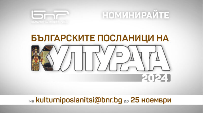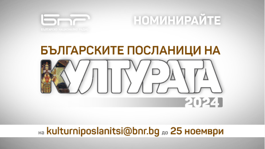 Започна новото издание на кампанията „Българските посланици на културата 2024“. Инициативата на Българското национално радио започна през 2021г. Фокусира се върху постиженията на изтъкнати писатели, поети, драматурзи, художници, актьори, певци, композитори, кинодейци и представители на танцовото изкуство, които с творчество си са надскочили границата на страната и са я направили разпознаваема в световното културно пространство.