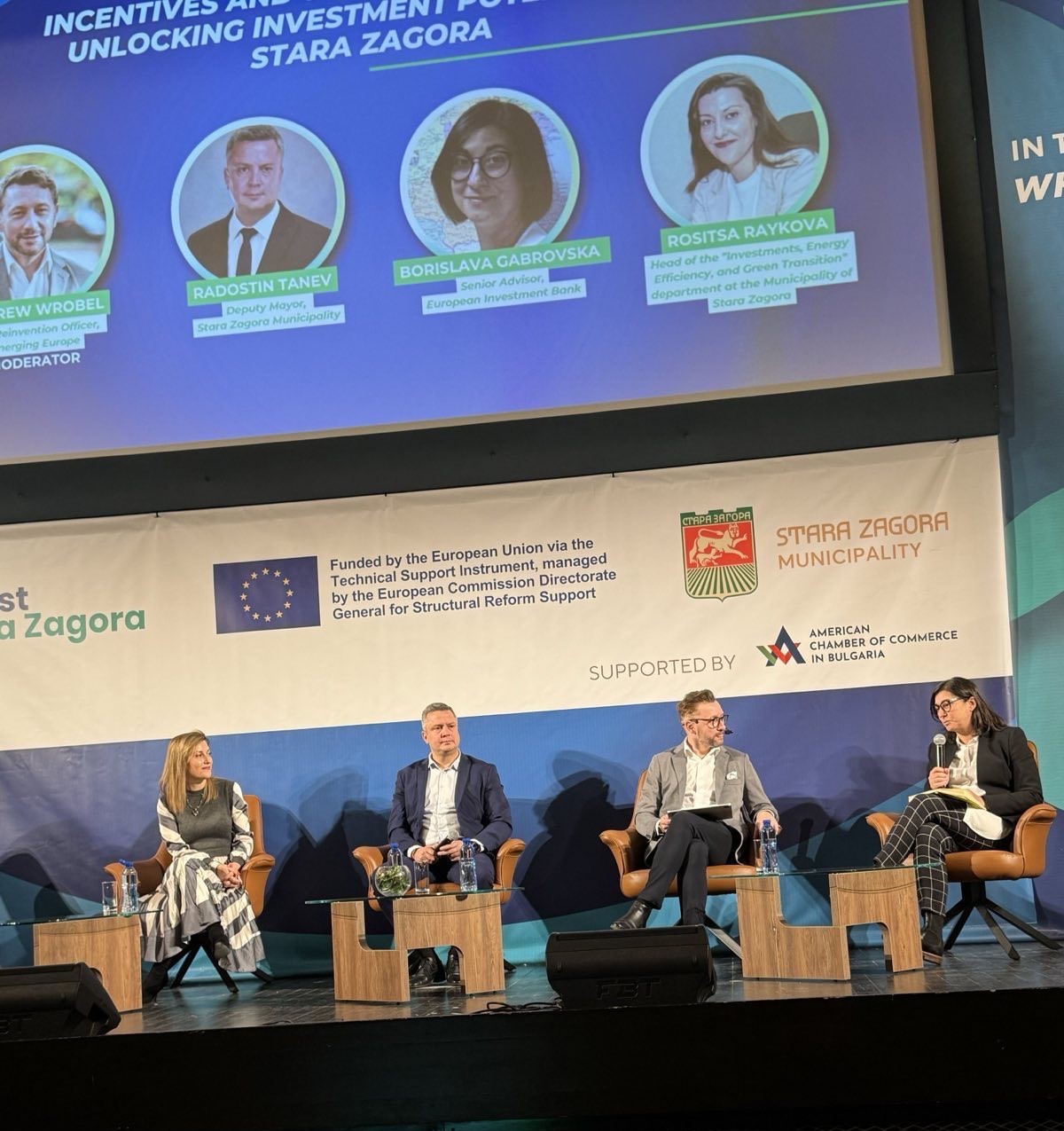 „Ние сме проактивни. Работим усилено за привличането на нови инвестиции, като се стремим да създадем бизнес екосистема, която добавя стойност за града и региона“, сподели Радостин Танев, зам.-кмет на Община Стара Загора с ресор „Транспорт, екология, инвестиции и зелен преход“. Той се включи в панела „Стимули и правна рамка: Отключване на инвестиционния потенциал в Стара Загора“, заедно с Росица Райкова, началник на отдел „Инвестиции, енергийна ефективност и зелен преход“.