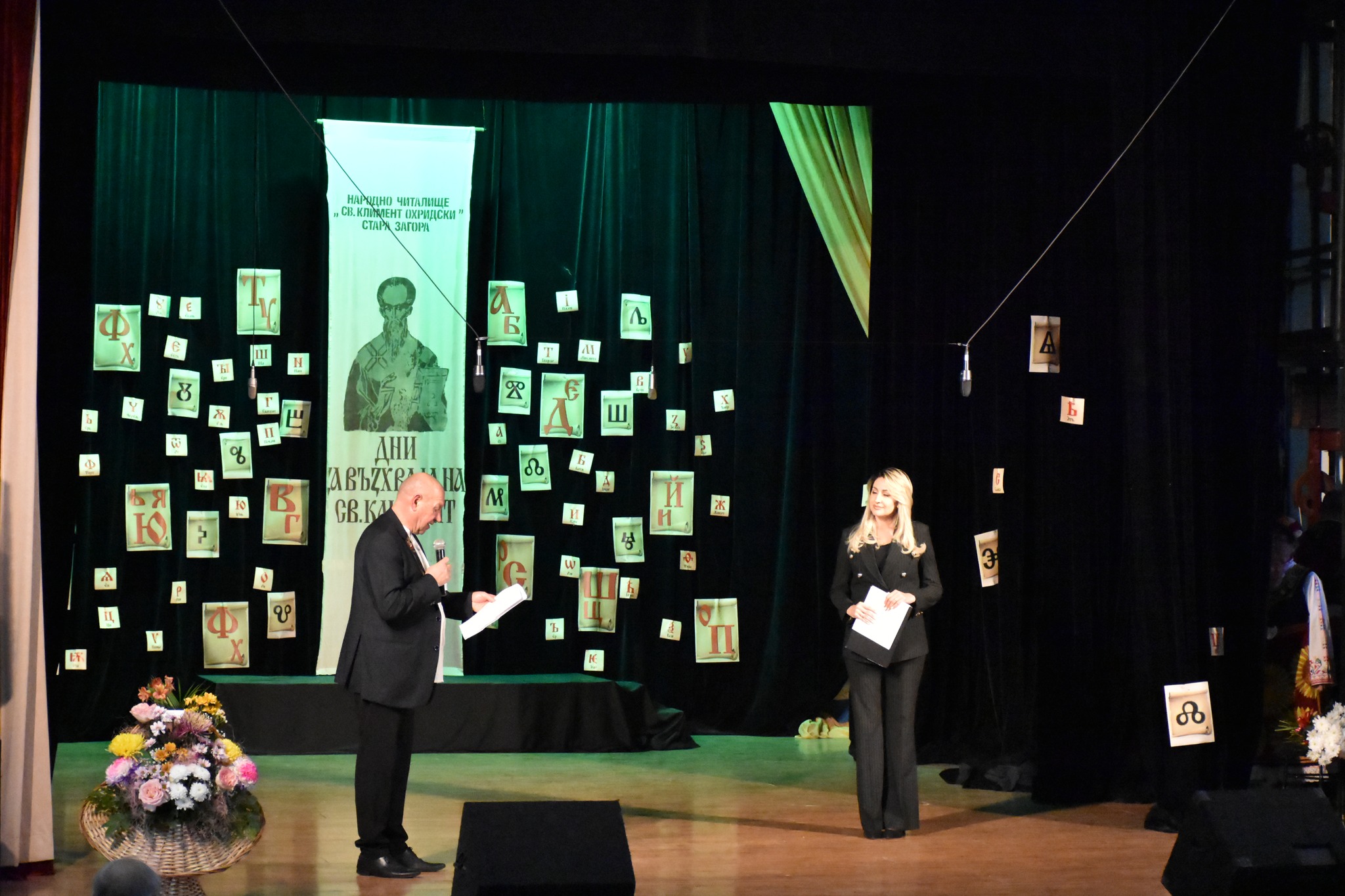 Община Стара Загора, в лицето на кмета Живко |Тодоров, почете празника на читалището и на сцената беше поднесена кошница цветя за изпълнителите от него.