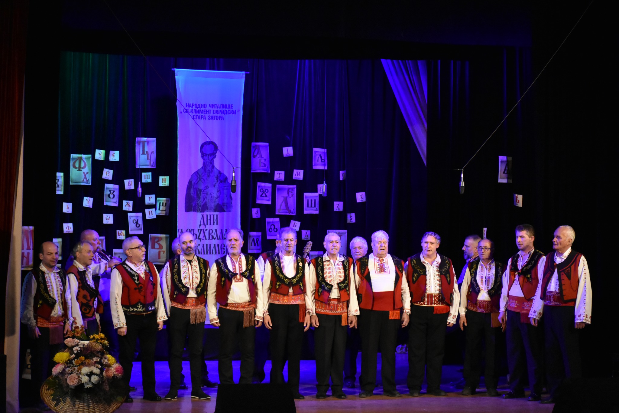 Светлините заляха сцената и прозвуча химна на Св. Климент Охридски, написан специално за хора на читалището от покойния председател Иван Аяров…