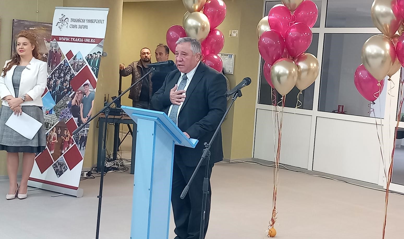 Аз съм един щастлив ректор и за мен е привилегия да бъда ректор на Тракийския университет заради това, което виждам днес, обърна се към присъстващите проф. д-р Добри Ярков.„Тракийският университет излезе от пределите на България и днес е глобален университет, който стои много стабилно на картата на висшето образование и на научно-развойната дейност. Университет, който е известен от Пекин и Улан Батор до Торонто и Чикаго, а от преди две седмици – в Загора, Мароко и Рабат, Йоханесбург и Претория в Южна Африка. Въпреки тежките международни кризи, войни, пандемии, политическа криза в България, нашият университет е на пета позиция в България! Той е в класацията на Ройтерс между 500 и 600 място, а догодина вярвам, че ще бъде в топ 500, убеден съм, че ще е така“, отбеляза още проф. Добри Ярков.