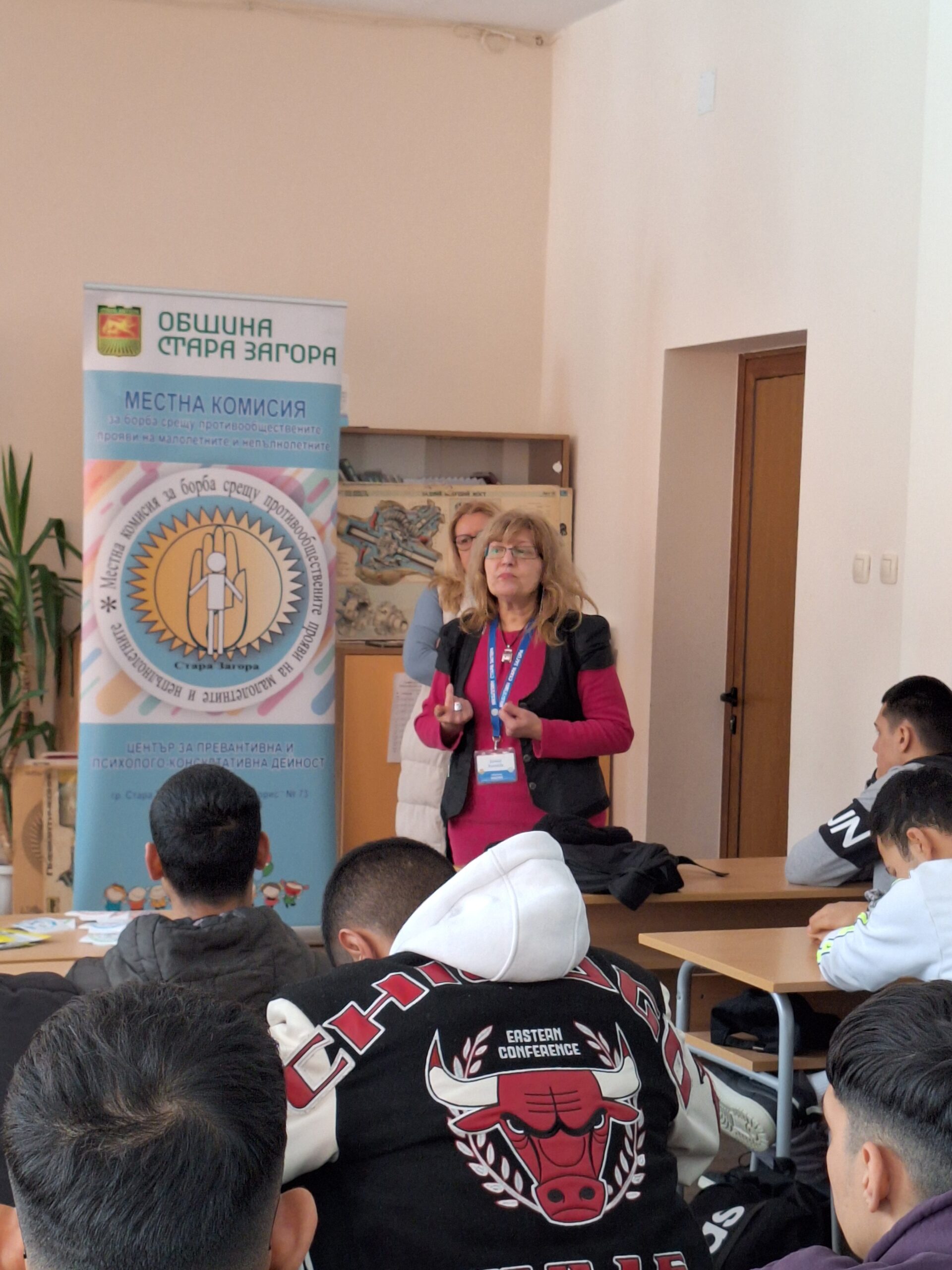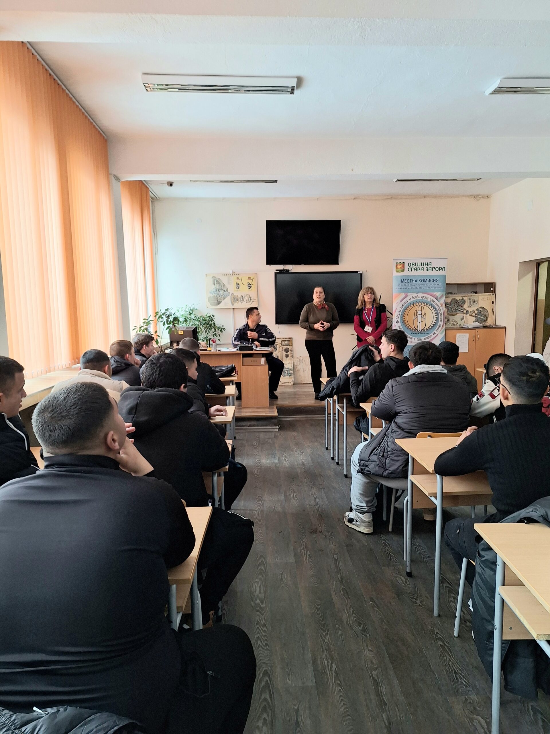 Посланието „Бъдеще без алкохол“ е императивно важно за самите тях, приеха ученици в гимназиална възраст от Стара Загора, на които предстои да станат водачи на моторни превозни средства. Активната дискусия с единадесетокласниците от ПГМТТ „Н. Й. Вапцаров“ бе организирана от Местната комисия за борба срещу противообществените прояви на малолетните и непълнолетните (МКБППМН) към Община Стара Загора. Това се случи на 18 февруари във връзка с изпълнение на План-програмата за превантивната дейност на МКБППМН за 2025 г. Гост-лекторите бяха гл. експерт Г. Димитрова от РЗИ в Стара Загора и инспектор Ж. Желязков от сектор ,,Пътна полиция“, които провокираха интереса на тийнейджърите и отговориха на много от техните въпроси.