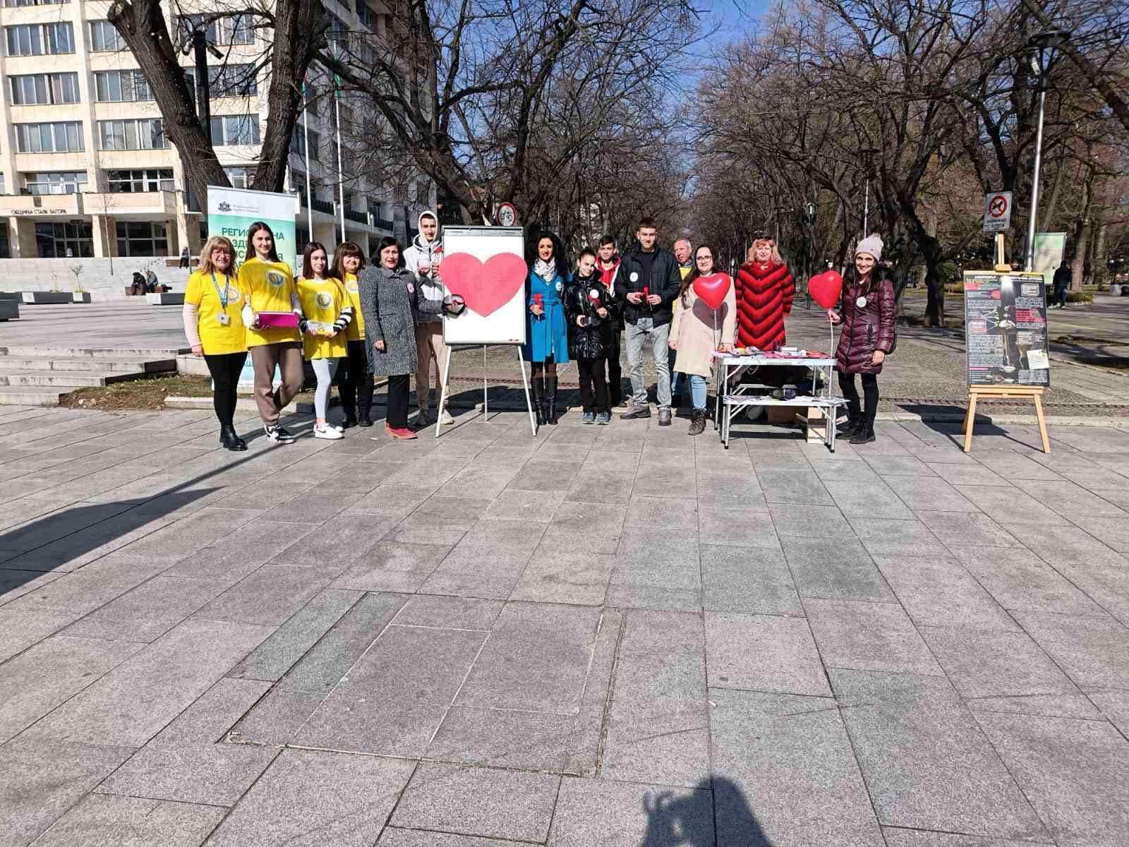 Всеки желаещ имаше възможността на постер от голямо червено сърце да изпише своите мисли за любовта, припомниха организаторите. Доброволките на МКБППМН от СУ ,,Максим Горки“ разпространяваха стикери и здравно-образователни материали, свързани с риска от употребата на алкохол най-вече сред млади хора.