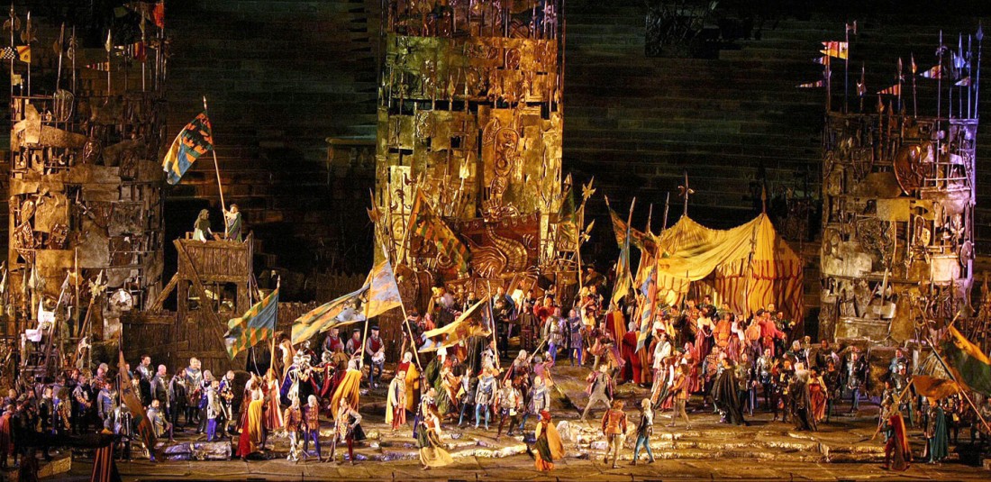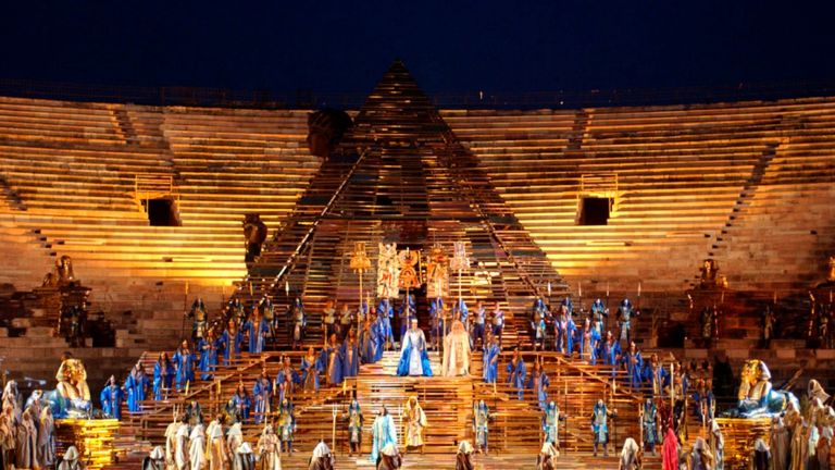 „Аида“ е най-често играната опера в амфитеатъра, тъй като със своята монументалност е изключително подходяща за голямата сцена. Именно с „Аида“ на Верди през 1913 г. започват оперните представления на открито във Верона. Поводът тогава е 100 години от рождението на прочутия италиански композитор.