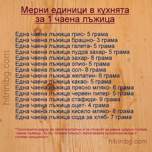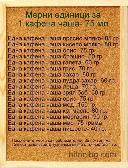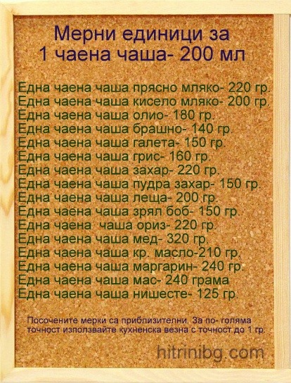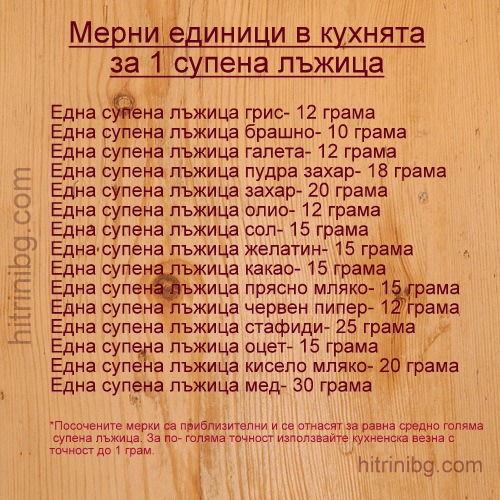 За рецептите е нужно да се знаят мерните единици на най- често срещаните продукти в кухнята.