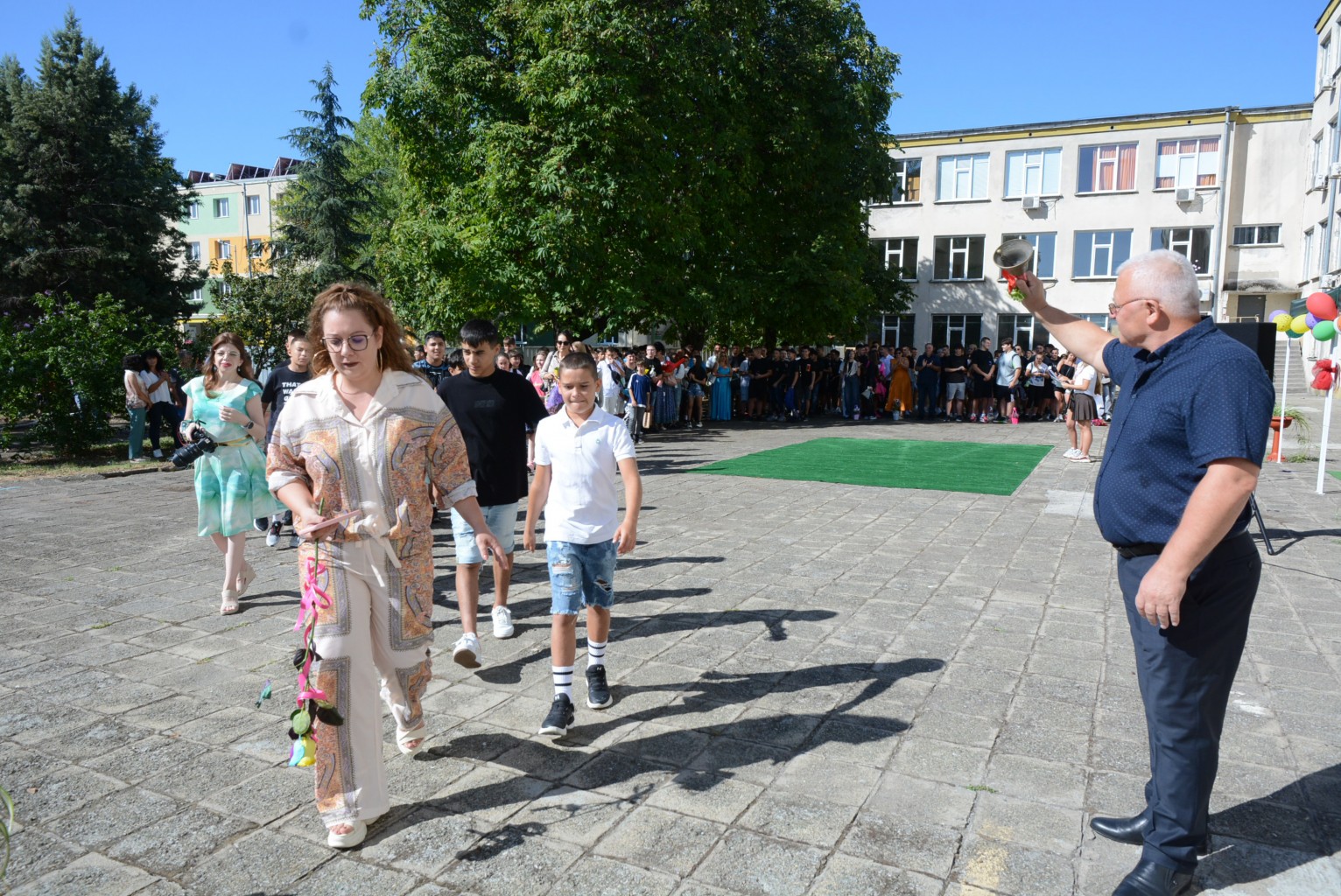 Церемонията завърши с първия училищен звънец – новите ученици преминаха първи прага и бяха посрещнати с питка. Заедно с тях в класните стаи влезе и зам.-кметът Светослав Колев, който разговаря с учениците за любимите им спортове и учебни интереси и ги насърчи да бъдат любопитни и амбициозни.