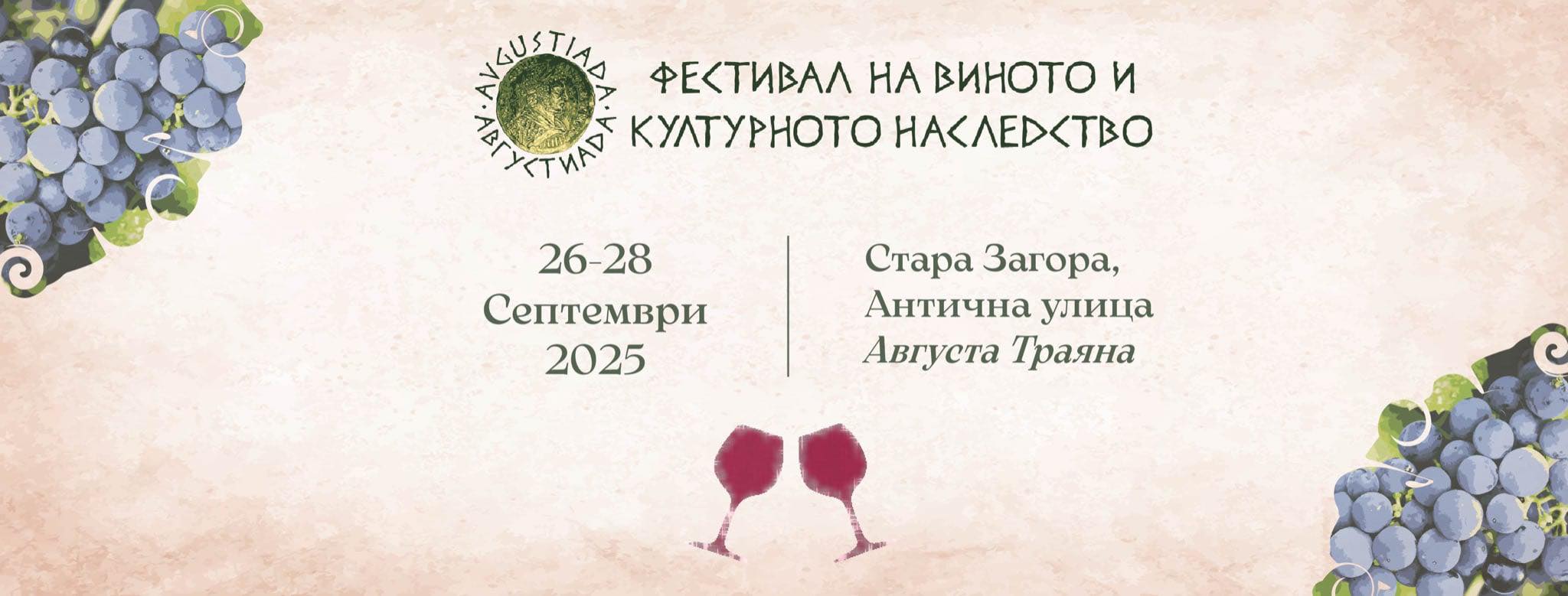 Традиционният за Стара Загора Фестивал на виното и културното наследство Августиада тази година ще проведе тринадесетото си издание от 26 до 28 септември 2025 г. на Античната римска улица в центъра на града.
