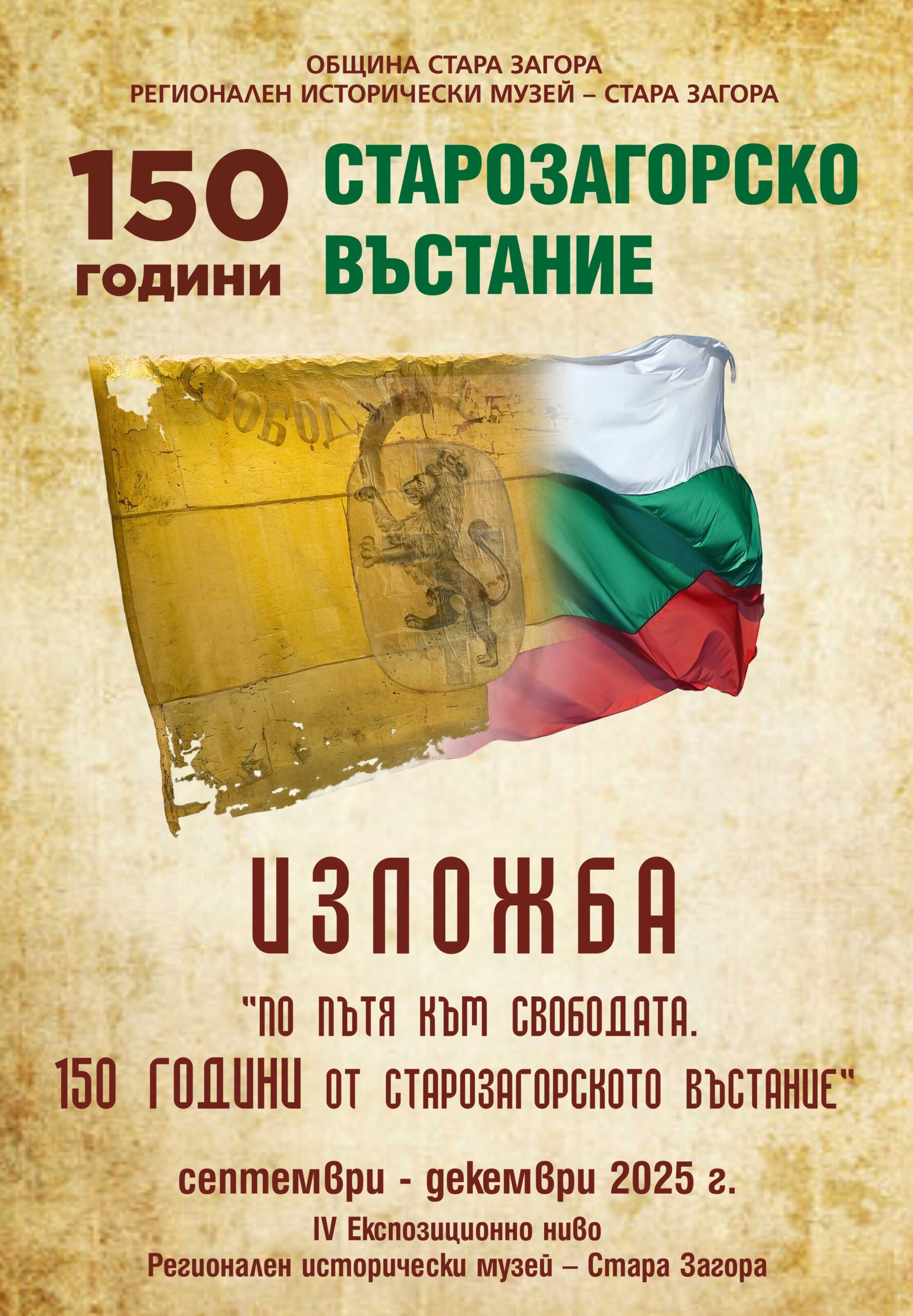 Изложба „По пътя към свободата. 150 години от Старозагорското въстание“. Експозицията ще бъде открита на 16 септември, от 17.30 ч., на IV експозиционно ниво в РИМ-Стара Загора.
