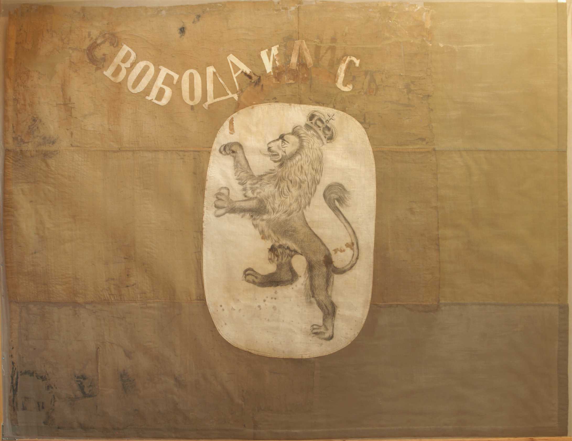 Бунтовниците полагат клетва пред ушитото за целта знаме, изработено от бяла, зелена и червена хоризонтални копринени ивици. Върху тях Христо Куртев рисува изправен лъв с корона на главата, а над него – надписът „Свобода или смърт“. За знаменосец е определен 20-годишният Койчо Георгиев, останал в историята с името Койчо Байрактар.