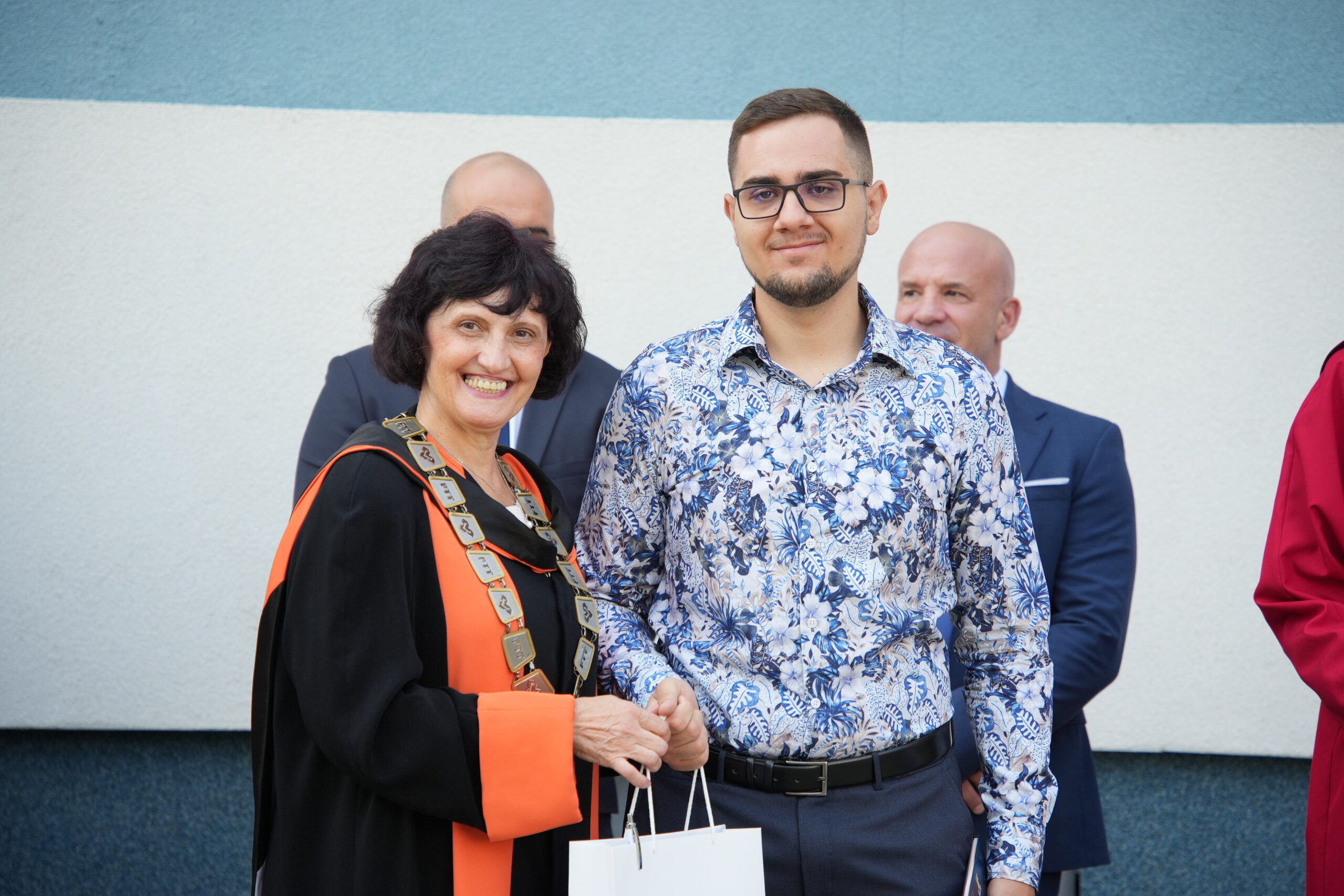 Студентите от първи курс поднесоха своите благодарности и обещаха да посрещнат с ентусиазъм предизвикателствата на университетския живот.