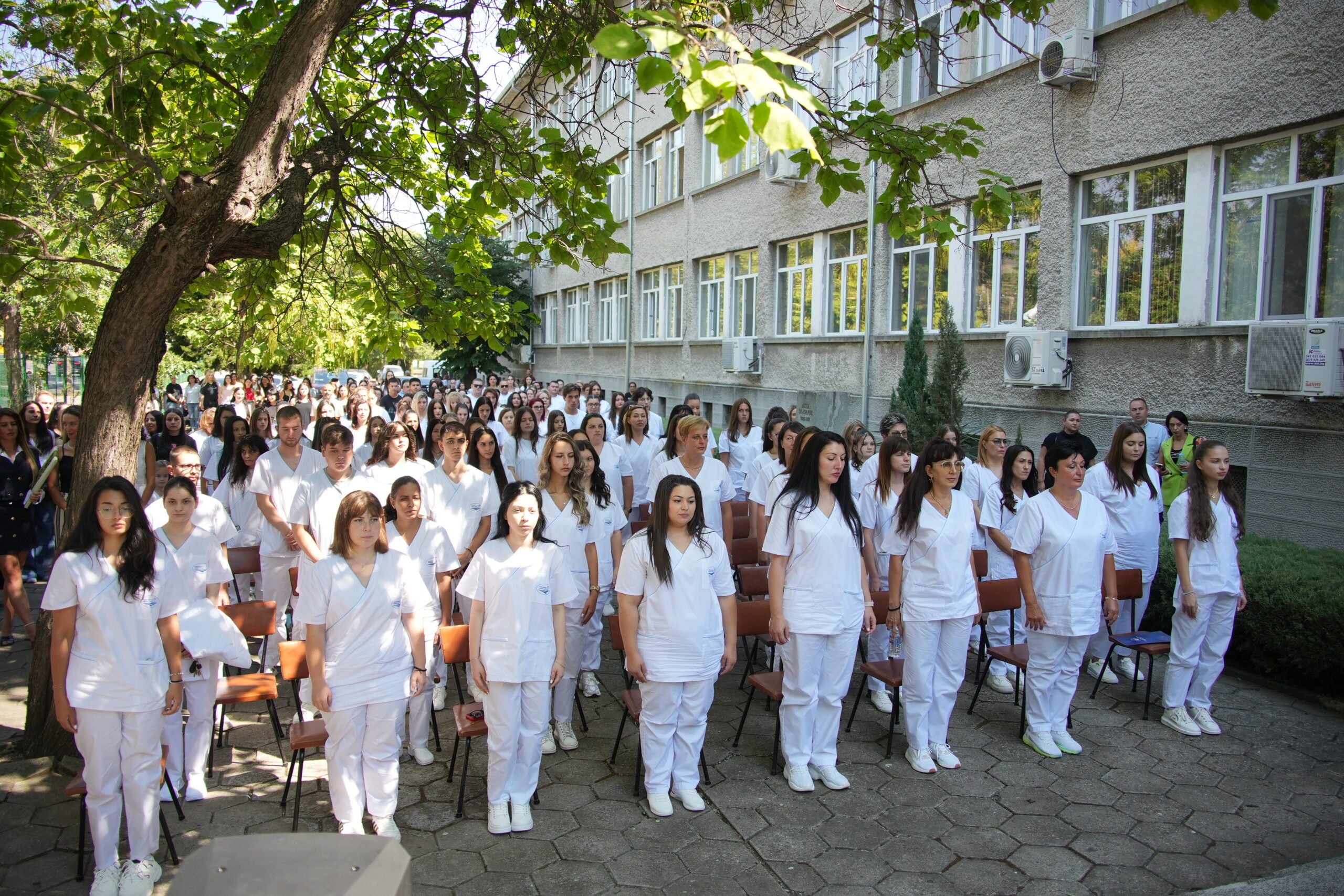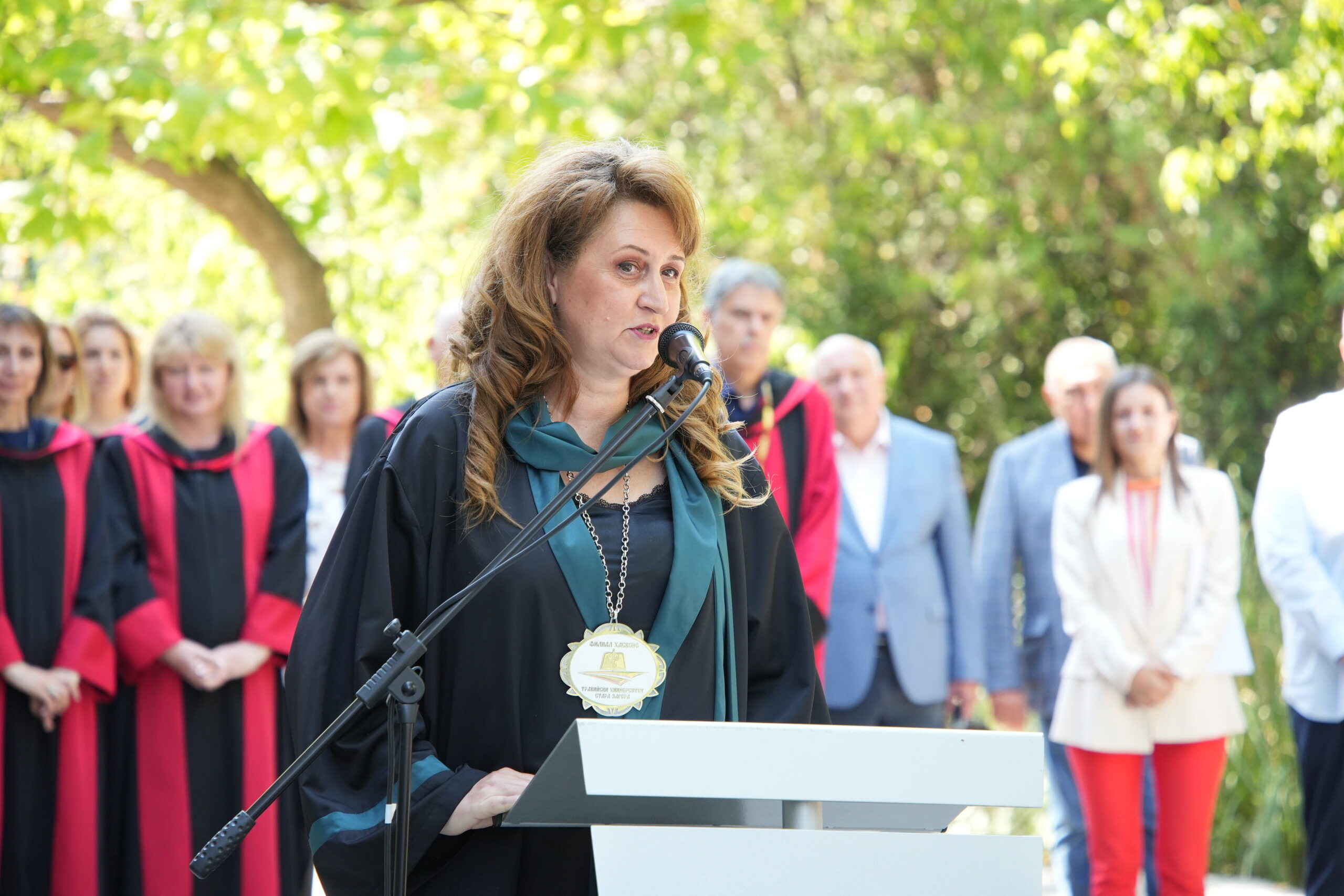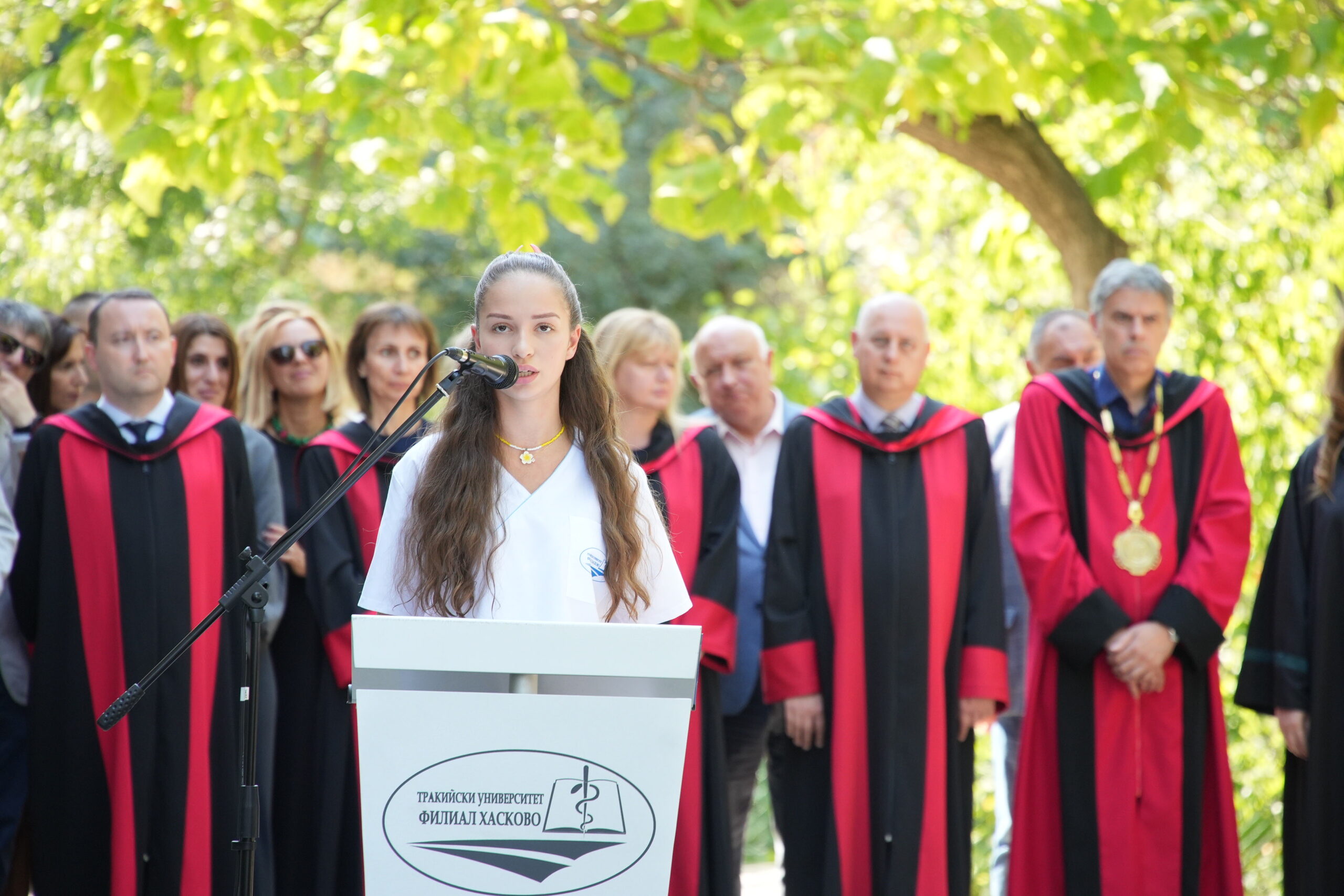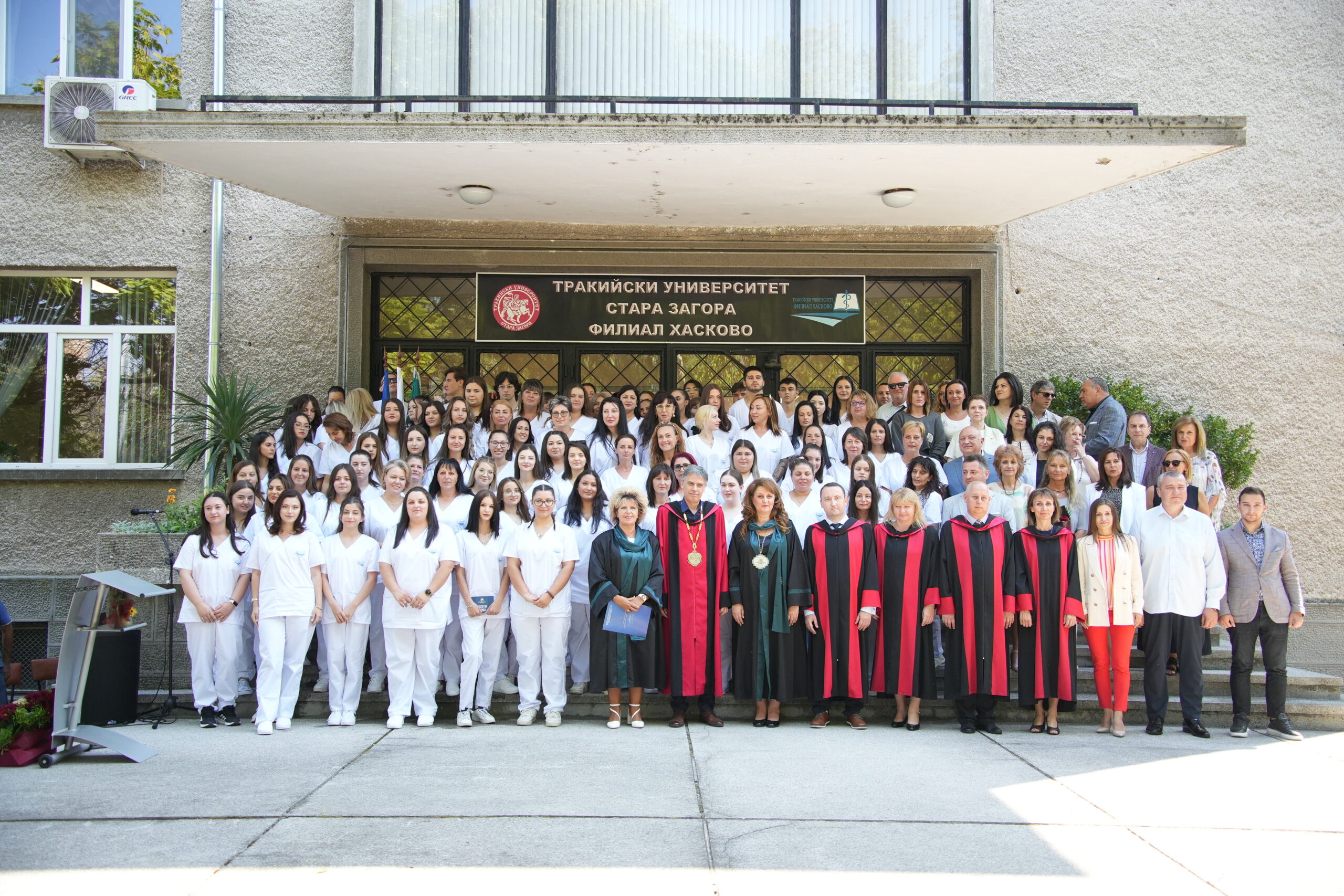 С тържествена церемония във вътрешния двор на Филиал – Хасково беше открита новата академична 2025/2026 година на Тракийски университет – Стара Загора. В празничния ден 93 първокурсници, облечени в бели клинични униформи, започнаха своето обучение в трите утвърдени специалности – медицинска сестра, акушерка и кинезитерапия.