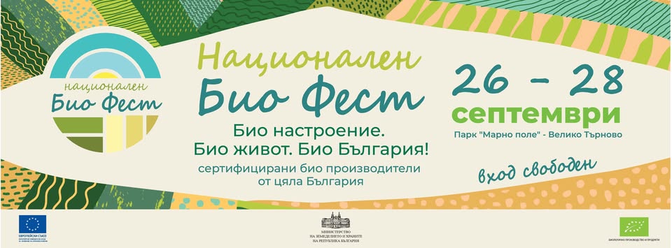 Велико Търново става сцена на първия Национален Био Фест – най-голямото изложение на сертифицирани български биопроизводители. В парк „Марно поле“ тридневен празник на био културата – изложение, безплатни дегустации, кулинарни демонстрации, детски активности, много забавления, образователни панели и безплатни концерти под открито небе.